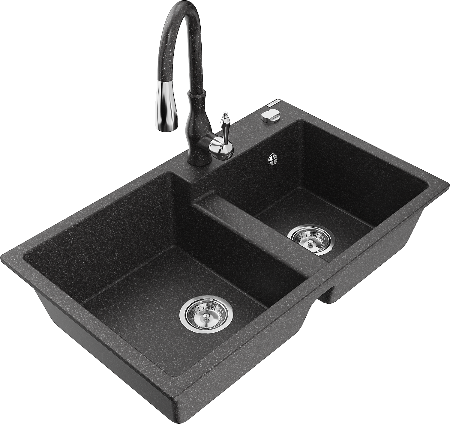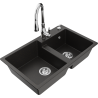 Mexen Tomas évier en granit à double bac avec robinet de cuisine Savita, noir moucheté - 6516-76-672601-76