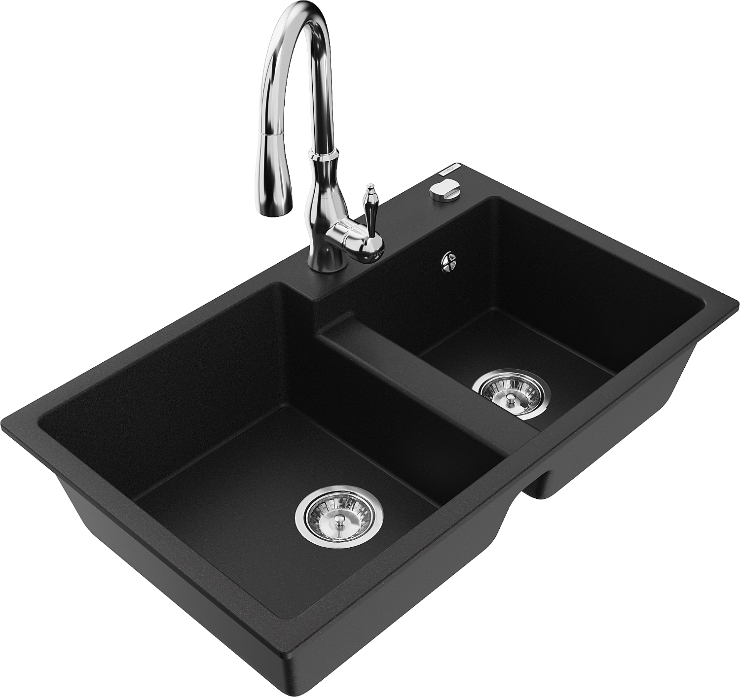 Mexen Tomas évier en granit à 2 bacs avec robinet de cuisine Savita, noir - 6516-77-672601-00