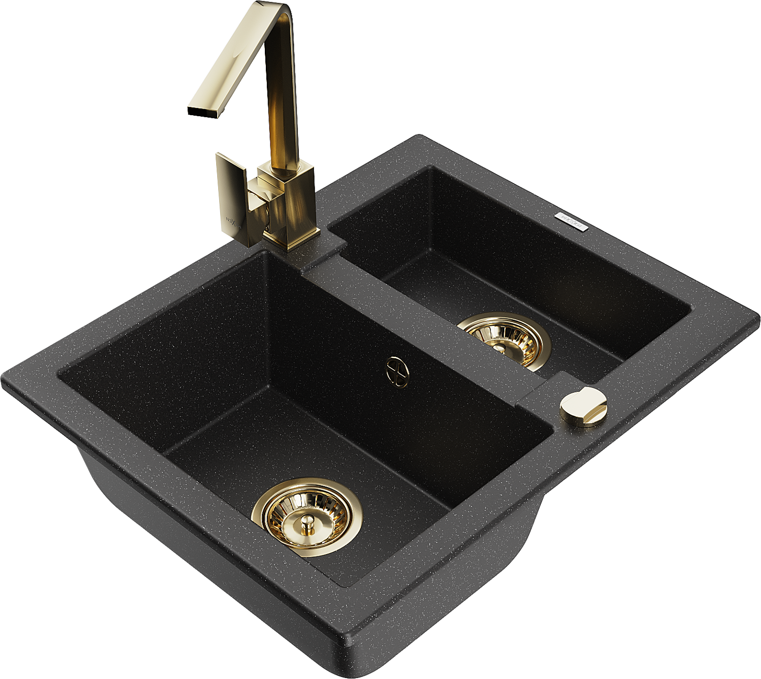 Mexen Carlos évier en granit 1,5 cuves avec robinet de cuisine Rita, noir/argent métallisé - 6518-73-670300-50