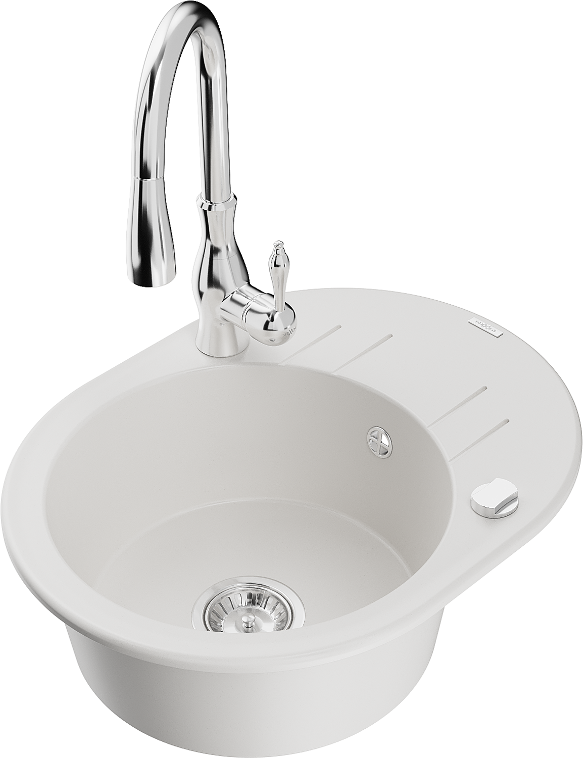 Mexen Kevin évier en granit 1 bac avec égouttoir et robinet de cuisine Savita, blanc - 6517-20-672601-00