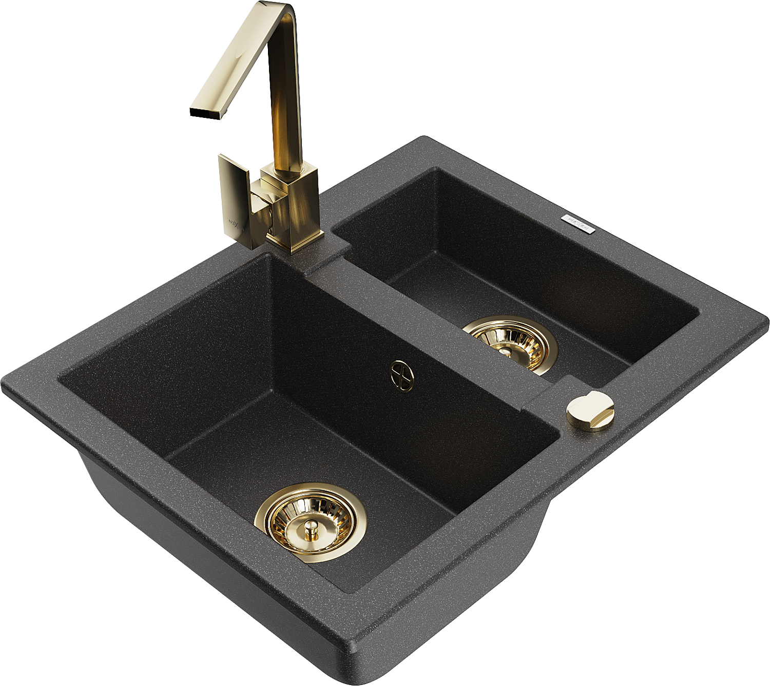 Mexen Carlos évier en granit 1,5 bac avec mitigeur de cuisine Rita, noir tacheté - 6518-76-670300-50