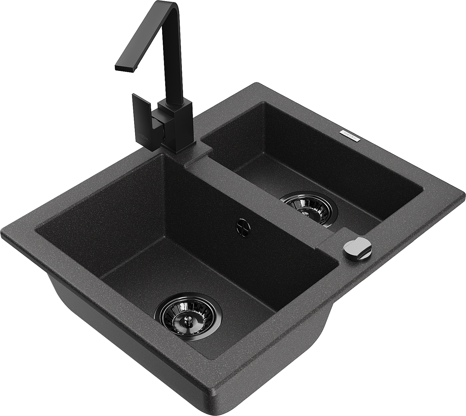 Mexen Carlos évier en granit 1,5 bac avec mitigeur de cuisine Rita, noir moucheté - 6518-76-670300-70-B
