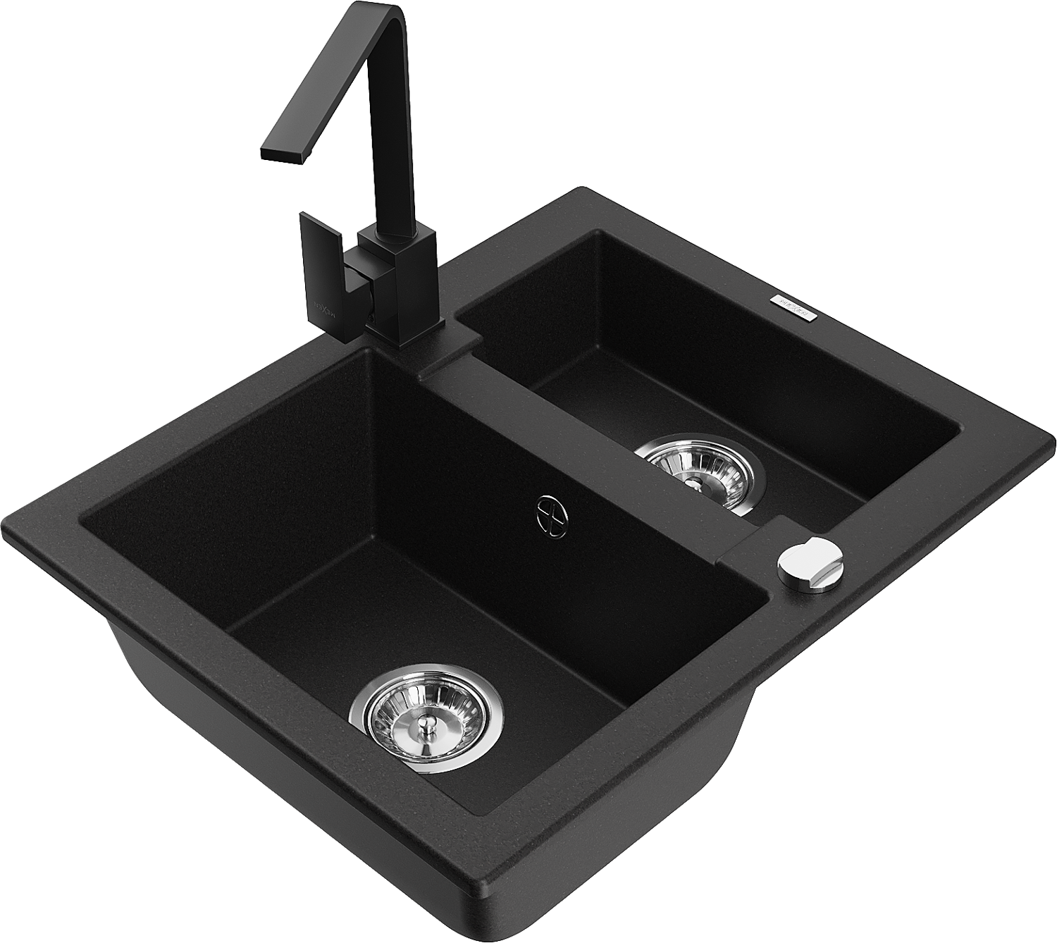Mexen Carlos évier en granit 1,5 bac avec mitigeur de cuisine Rita, noir - 6518-77-670300-70