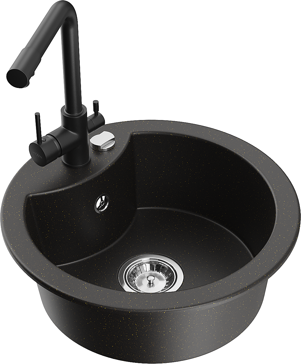 Mexen Diego évier en granit à un bac avec robinet de cuisine Duero, noir/or métallisé - 6512-75-671600-70