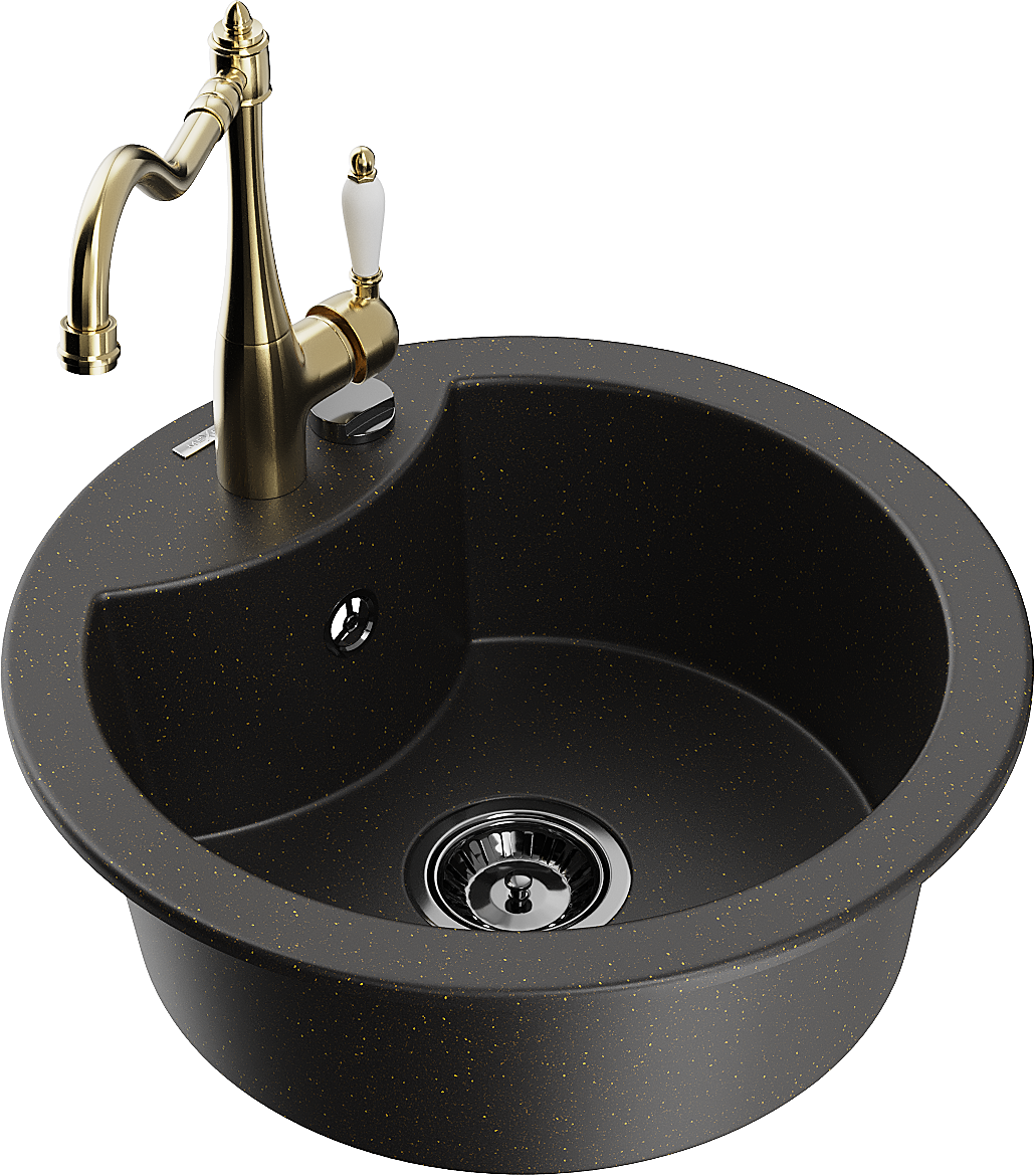 Mexen Diego évier en granit 1 bac avec robinet de cuisine Carla, noir/or métallisé - 6512-75-670700-50-B