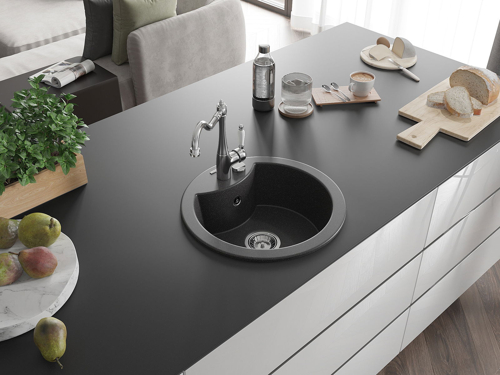L'évier est fabriqué en granit de haute qualité. Il constitue un complément élégant et surtout pratique pour toute cuisine, quel que soit son style. La qualité et la durabilité du granit garantissent de nombreuses années d'utilisation.