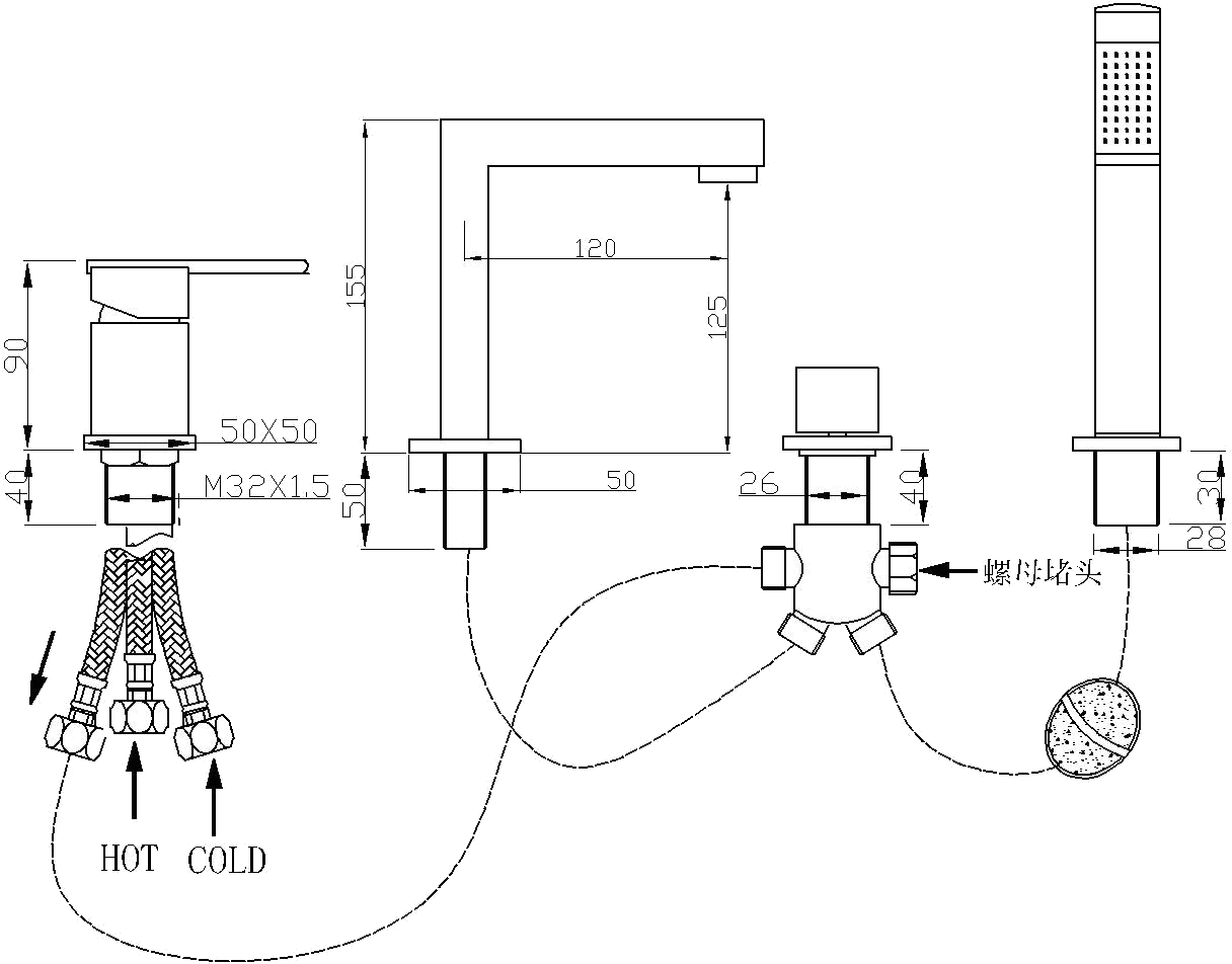 Le robinet peut être monté sur le bord de la baignoire, dans des trous spécialement prévus à cet effet. Cette méthode offre un accès facile et pratique et permet de régler rapidement le débit et la température de l'eau. Une solution esthétique qui souligne le style de la salle de bains.