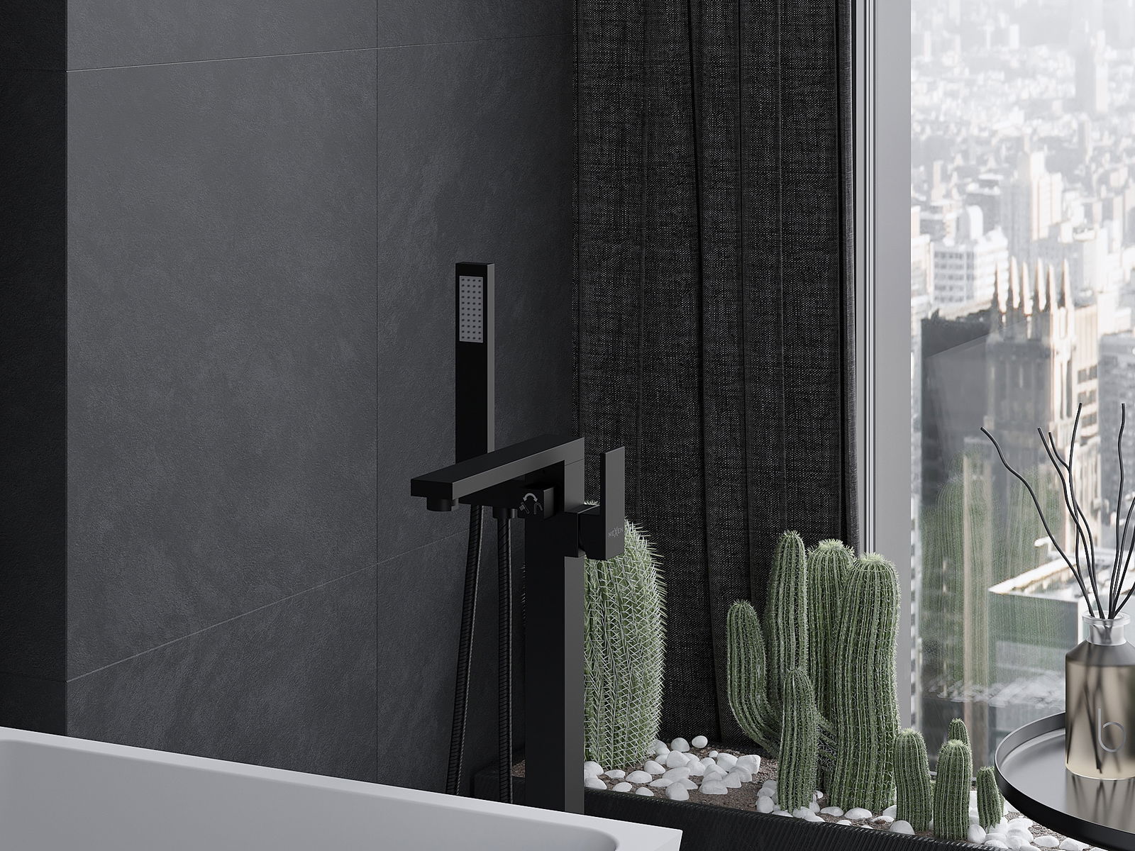 Mexen Urano robinet de baignoire autoportant, noir - 75233-70