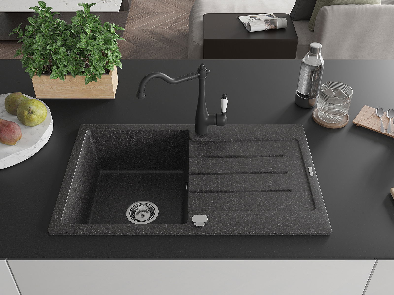 L'évier est fabriqué en granit de haute qualité. Il constitue un complément élégant et surtout pratique pour toute cuisine, quel que soit son style. La qualité et la durabilité du granit garantissent de nombreuses années d'utilisation.