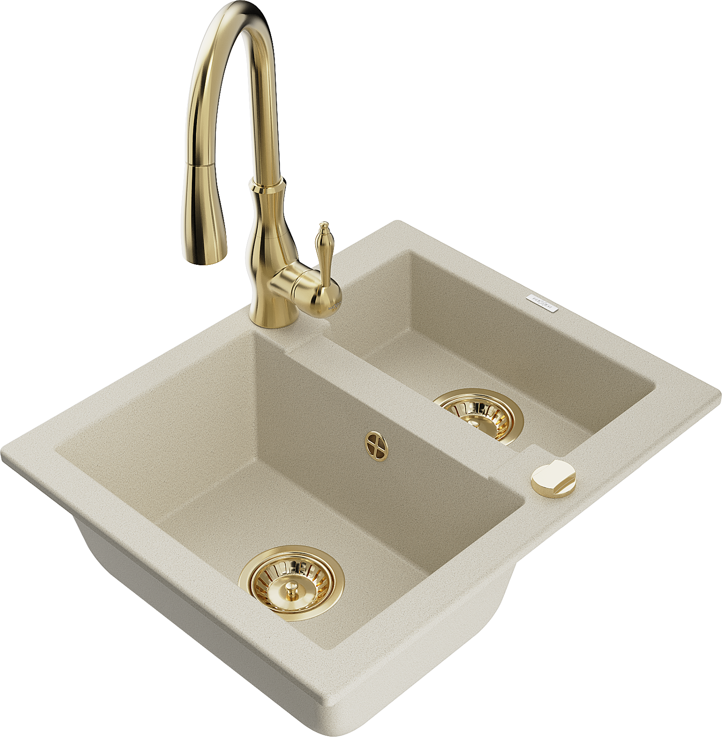 Mexen Carlos évier en granit 1,5 bac avec mitigeur de cuisine Savita, beige - 6518-69-672601-50