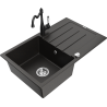 Mexen Bruno évier de cuisine en granit à 1 bac avec égouttoir et mitigeur de cuisine Carla, noir moucheté - 6513-76-670700-76
