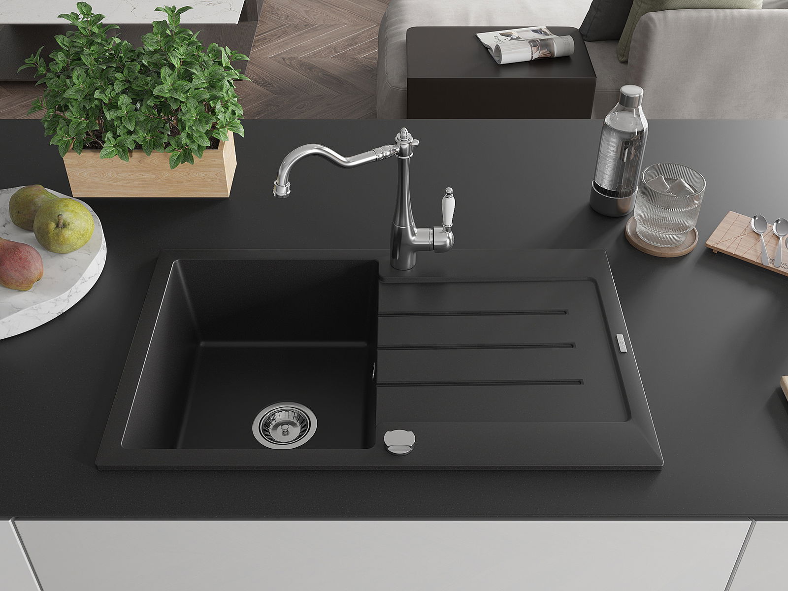 L'évier est fabriqué en granit de haute qualité. Il constitue un complément élégant et surtout pratique pour toute cuisine, quel que soit son style. La qualité et la durabilité du granit garantissent de nombreuses années d'utilisation.