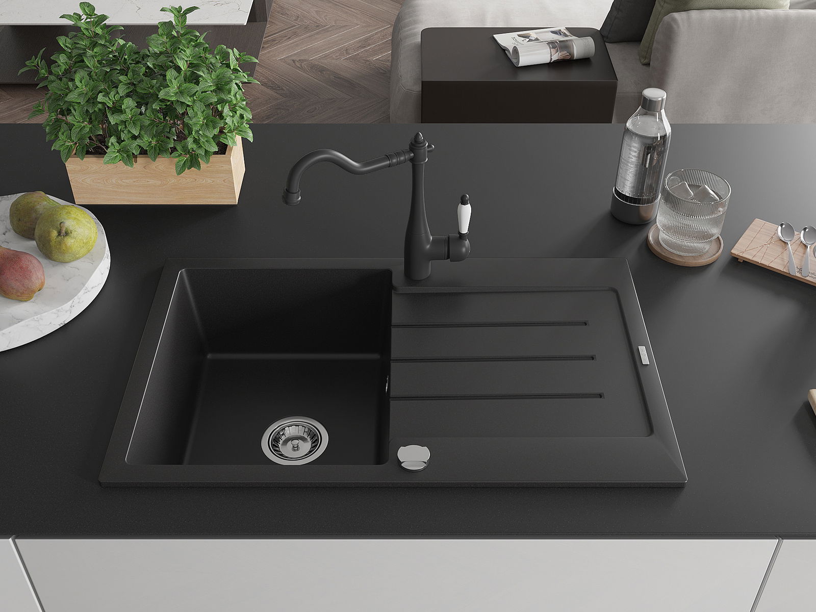 L'évier est fabriqué en granit de haute qualité. Il constitue un complément élégant et surtout pratique pour toute cuisine, quel que soit son style. La qualité et la durabilité du granit garantissent de nombreuses années d'utilisation.