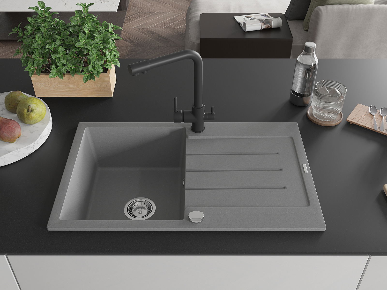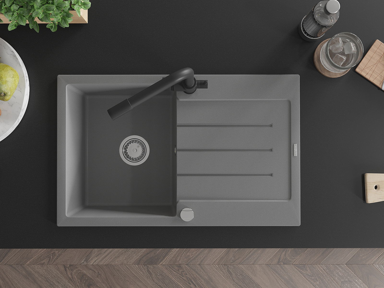 L'évier est fabriqué en granit de haute qualité. Il constitue un complément élégant et surtout pratique pour toute cuisine, quel que soit son style. La qualité et la durabilité du granit garantissent de nombreuses années d'utilisation.