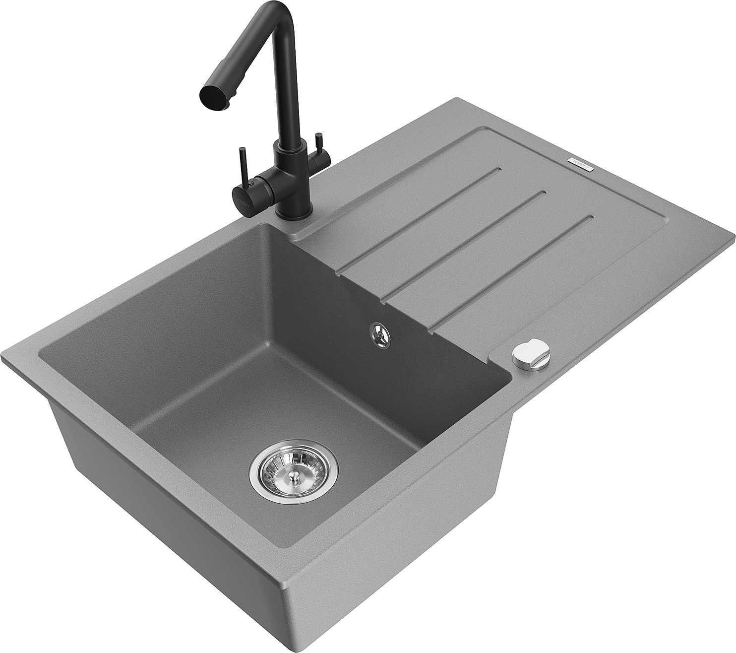 Mexen Bruno évier en granit 1 bac avec égouttoir et mitigeur de cuisine Duero, gris - 6513-71-671600-70