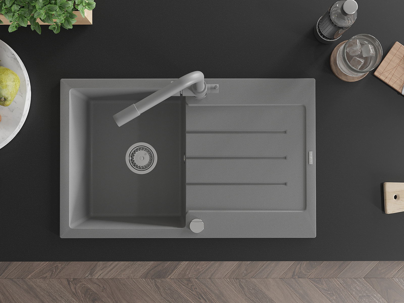 Mexen Bruno évier de cuisine en granit 1 bac avec égouttoir et robinet Duero, gris - 6513-71-671600-71