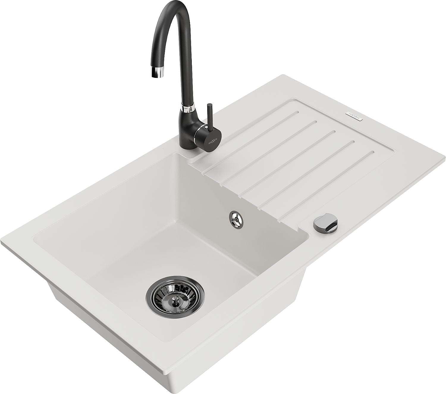 Mexen Pablo évier granit 1 bac avec égouttoir et robinet de cuisine Telma, blanc - 6510-20-670200-70