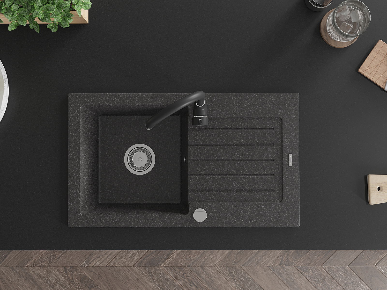 L'évier est fabriqué en granit de haute qualité. Il constitue un complément élégant et surtout pratique pour toute cuisine, quel que soit son style. La qualité et la durabilité du granit garantissent de nombreuses années d'utilisation.
