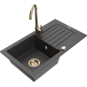 Mexen Pablo évier en granit 1 bac avec égouttoir et robinet de cuisine Telma, noir - 6510-77-670200-50-B