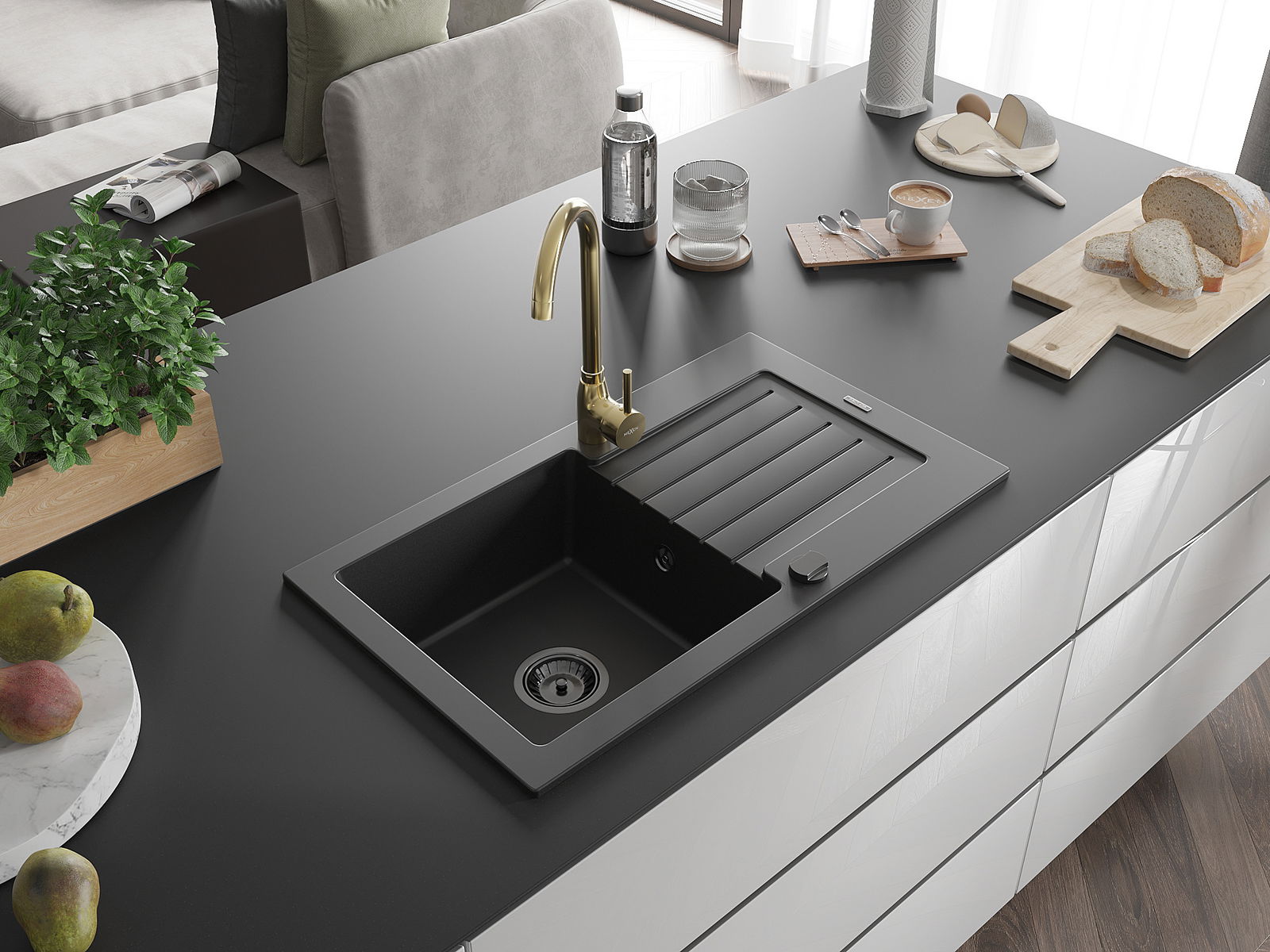 L'évier est fabriqué en granit de haute qualité. Il constitue un complément élégant et surtout pratique pour toute cuisine, quel que soit son style. La qualité et la durabilité du granit garantissent de nombreuses années d'utilisation.