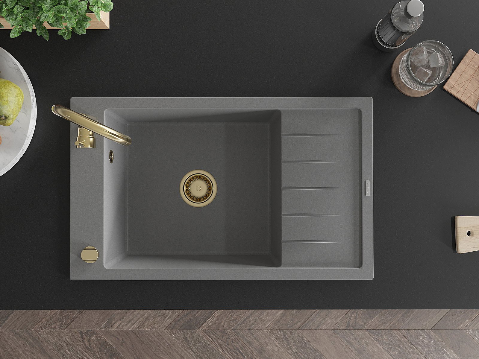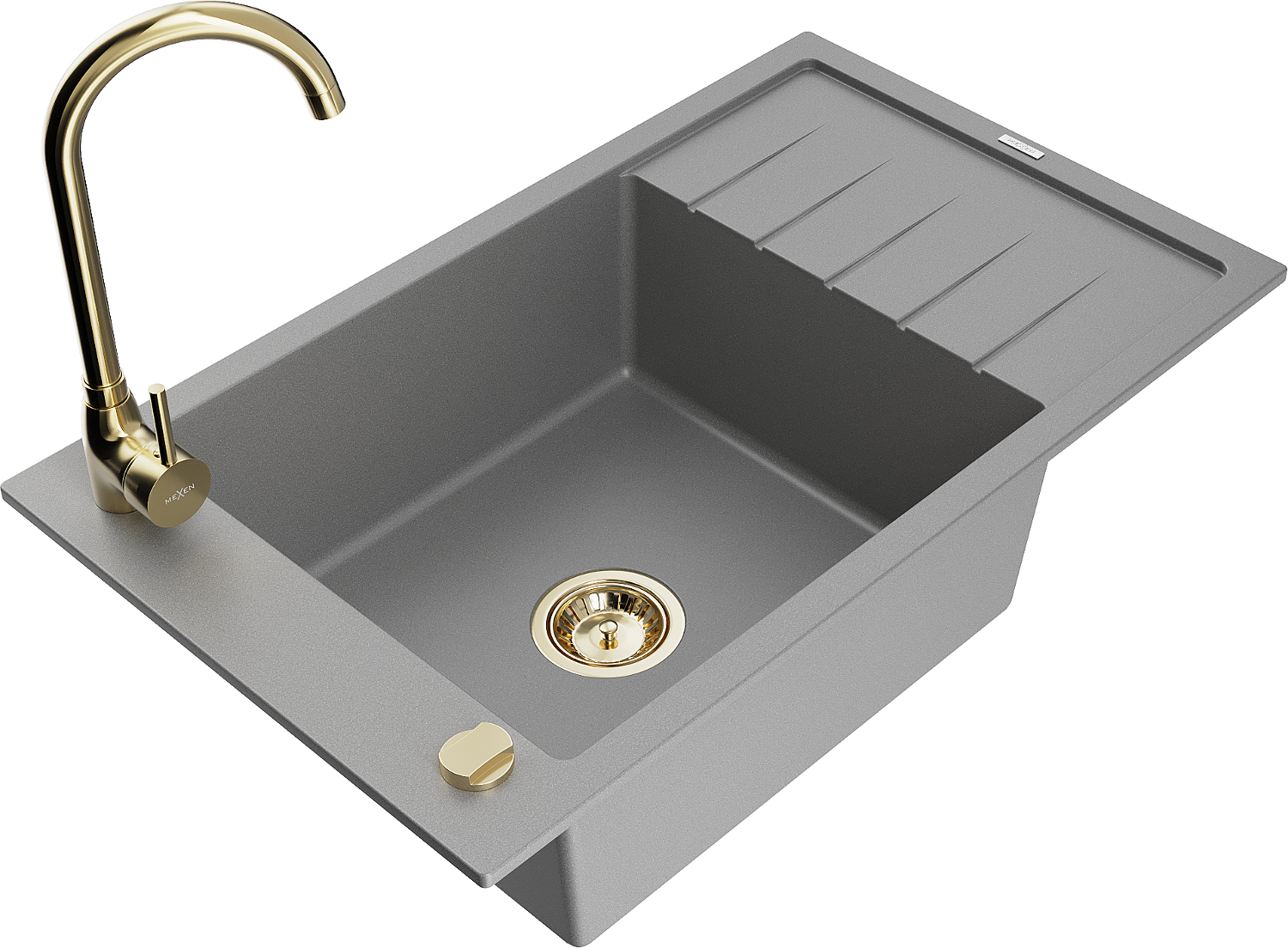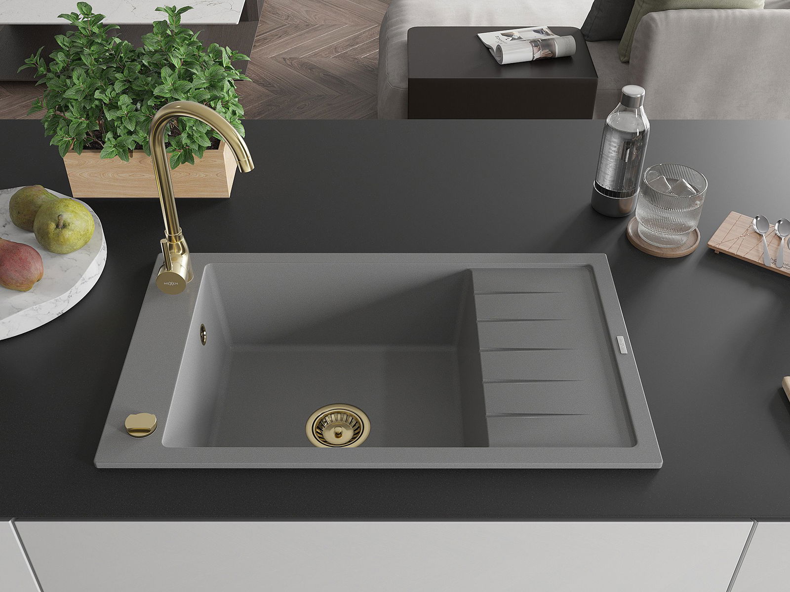 Mexen Elias évier de cuisine 1 bac en granit avec égouttoir et robinet Telma, gris - 6511-71-670200-50