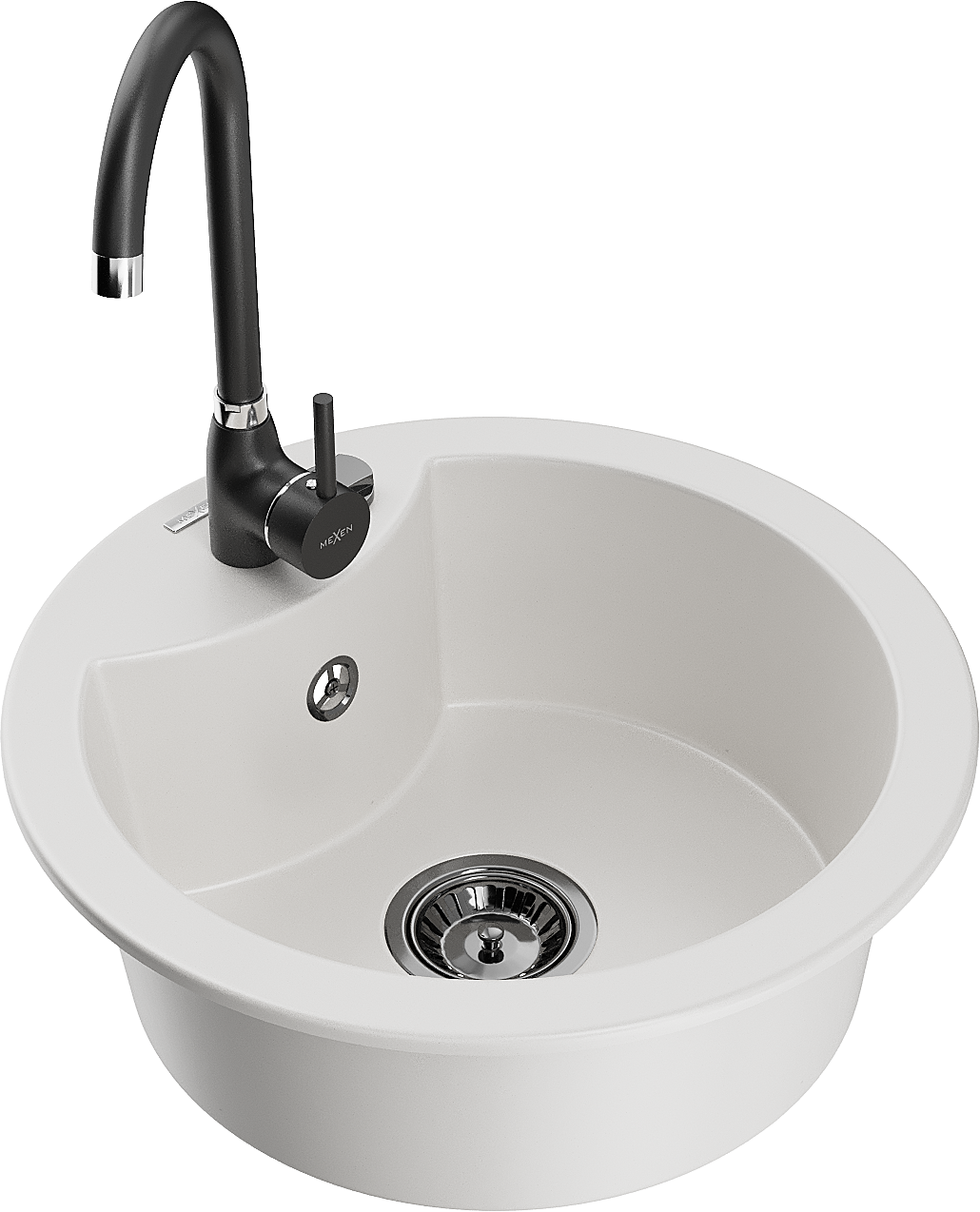 Mexen Diego évier en granit 1 bac avec robinet de cuisine Telma, blanc - 6512-20-670200-70