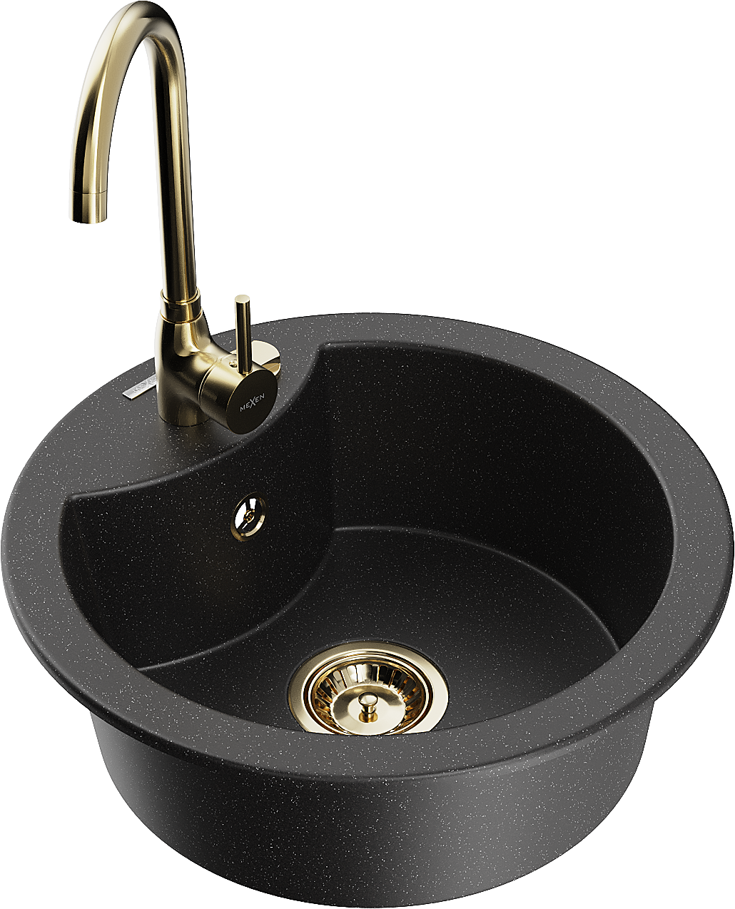 Mexen Diego évier en granit 1 bac avec robinet de cuisine Telma, noir/argent - 6512-73-670200-50