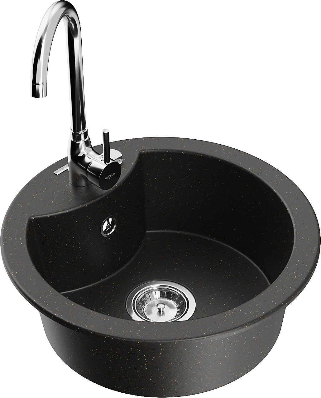 Mexen Diego évier en granit 1 bac avec robinet de cuisine Telma, noir/or - 6512-75-670200-00