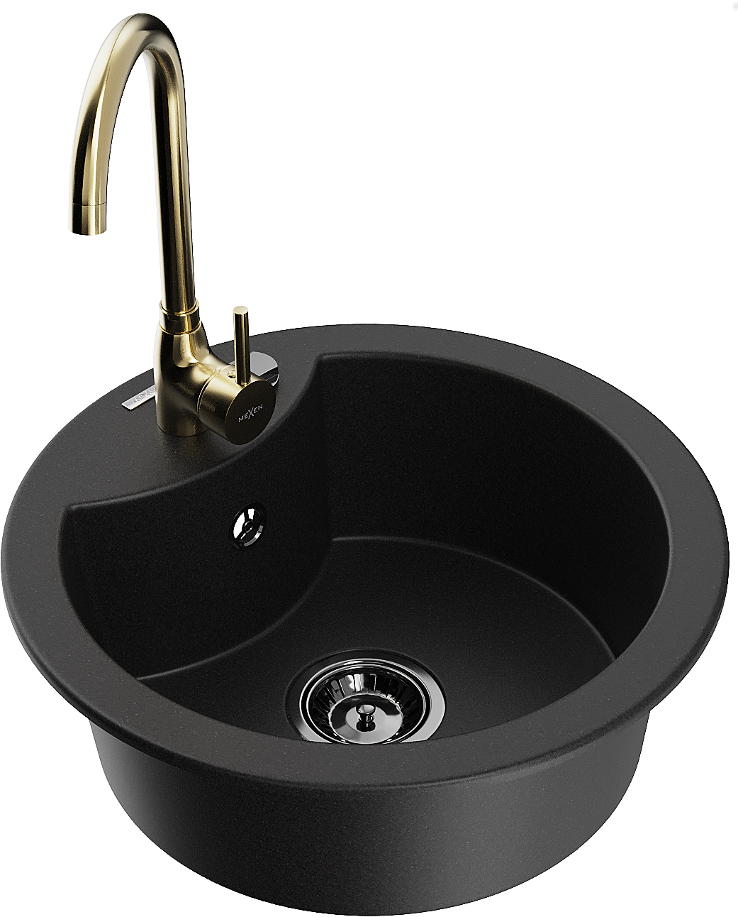 Mexen Diego évier en granit à 1 bac avec robinet de cuisine Telma, noir - 6512-77-670200-50-B