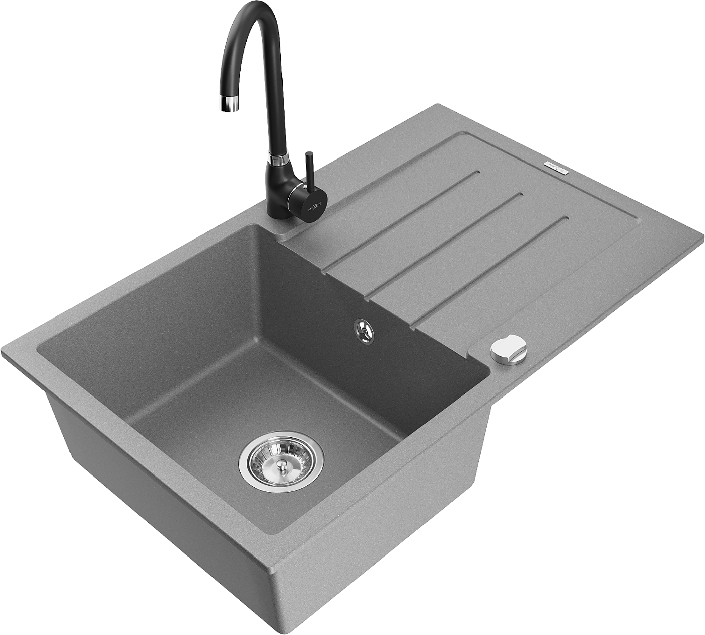 Mexen Bruno évier en granit 1 bac avec égouttoir et mitigeur de cuisine Telma, gris - 6513-71-670200-70