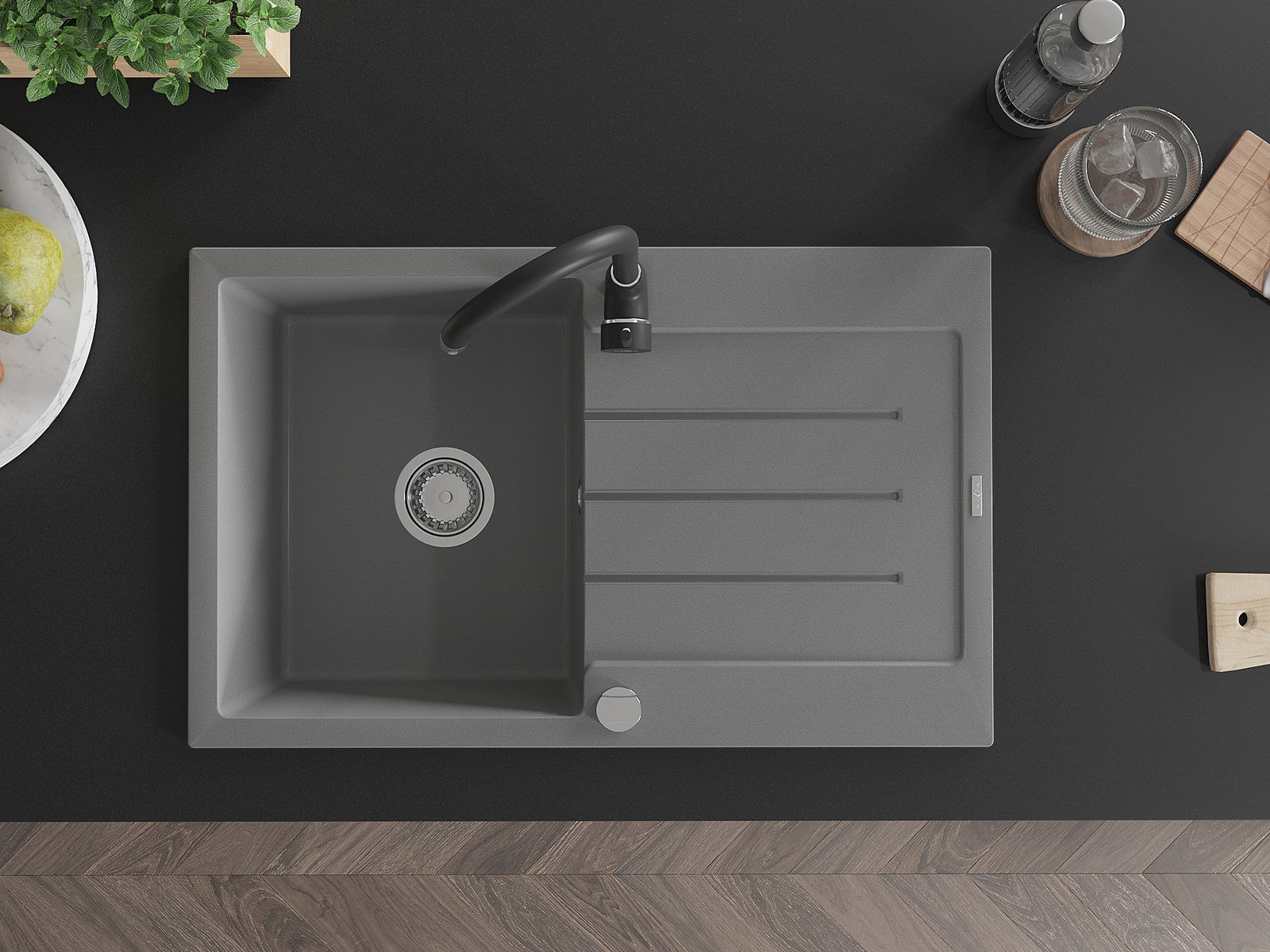 L'évier est fabriqué en granit de haute qualité. Il constitue un complément élégant et surtout pratique pour toute cuisine, quel que soit son style. La qualité et la durabilité du granit garantissent de nombreuses années d'utilisation.