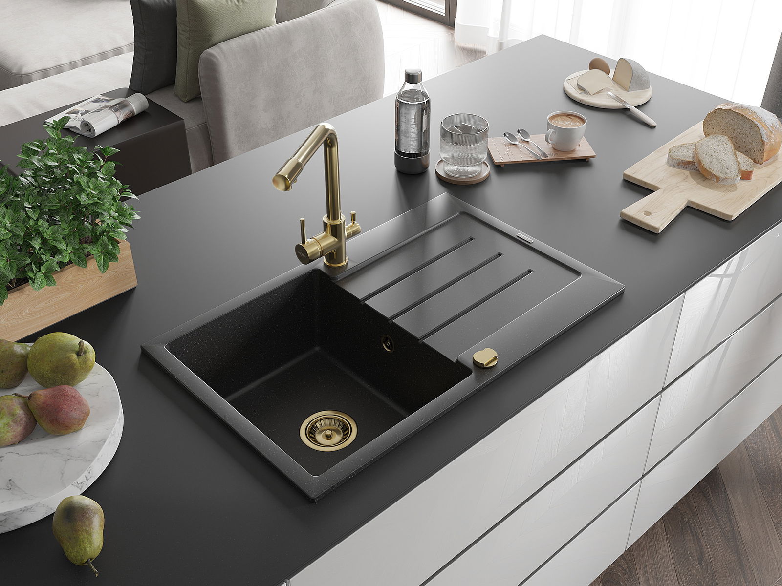 L'évier est fabriqué en granit de haute qualité. Il constitue un complément élégant et surtout pratique pour toute cuisine, quel que soit son style. La qualité et la durabilité du granit garantissent de nombreuses années d'utilisation.