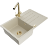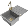 Mexen Bruno évier en granit 1 bac avec égouttoir et robinet de cuisine Duero, noir / métal doré - 6513-75-671600-50-B