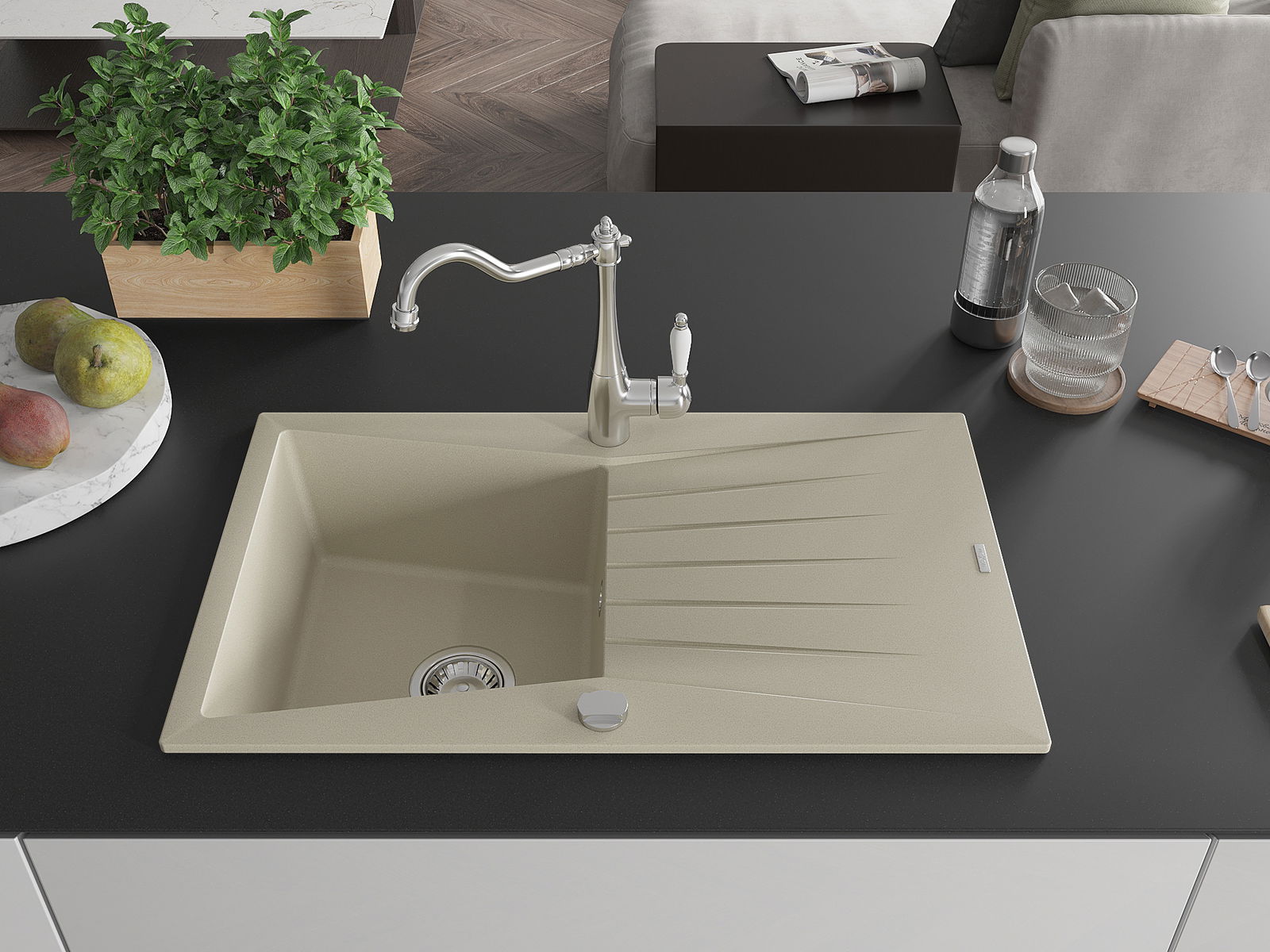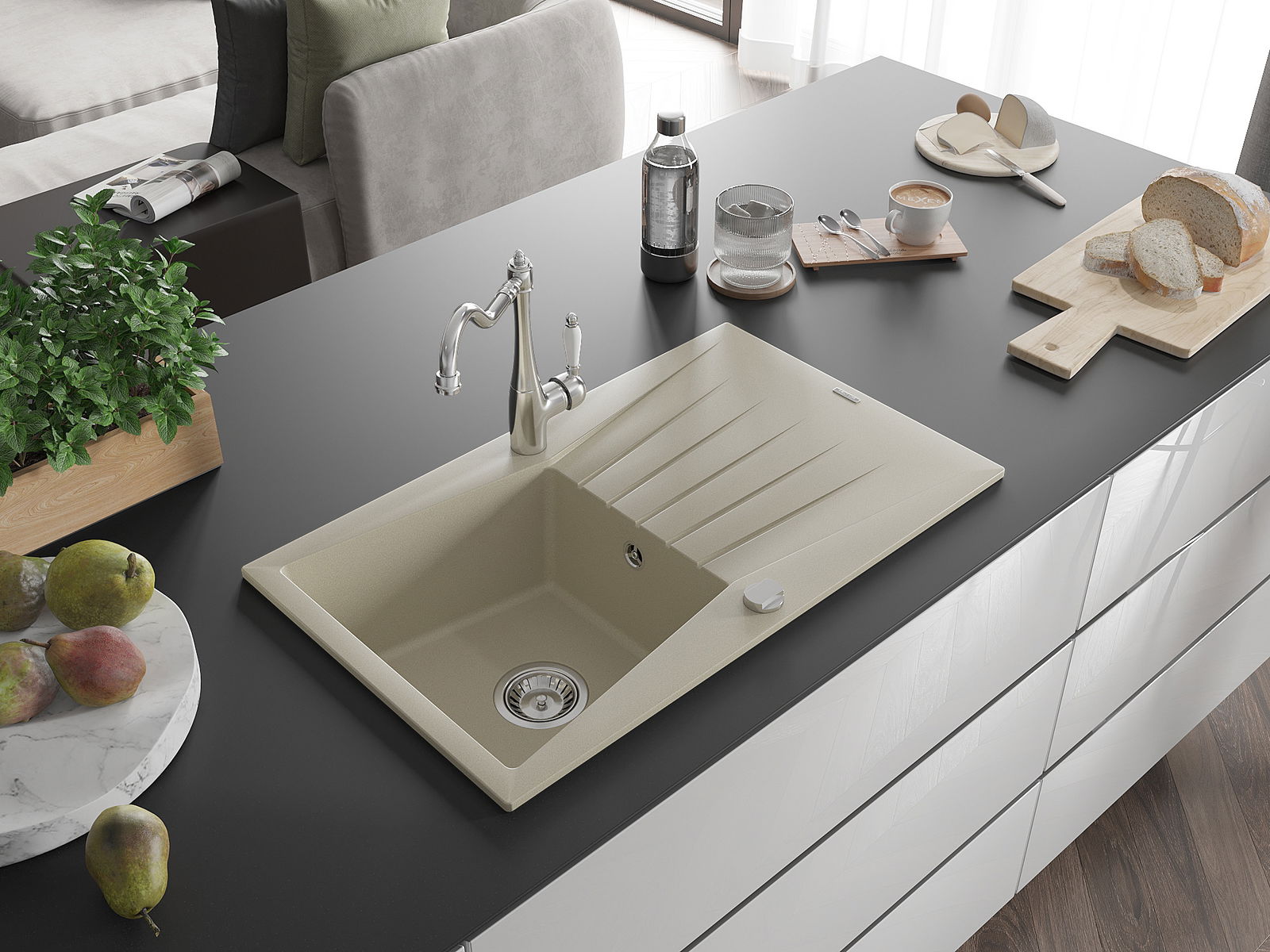 L'évier est fabriqué en granit de haute qualité. Il constitue un complément élégant et surtout pratique pour toute cuisine, quel que soit son style. La qualité et la durabilité du granit garantissent de nombreuses années d'utilisation.