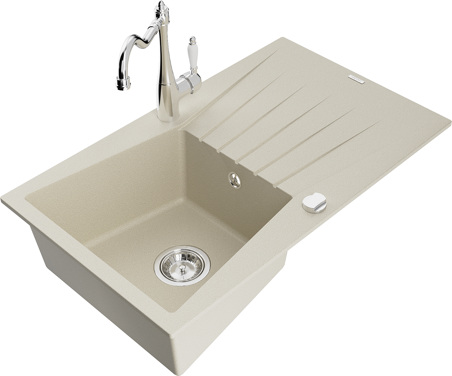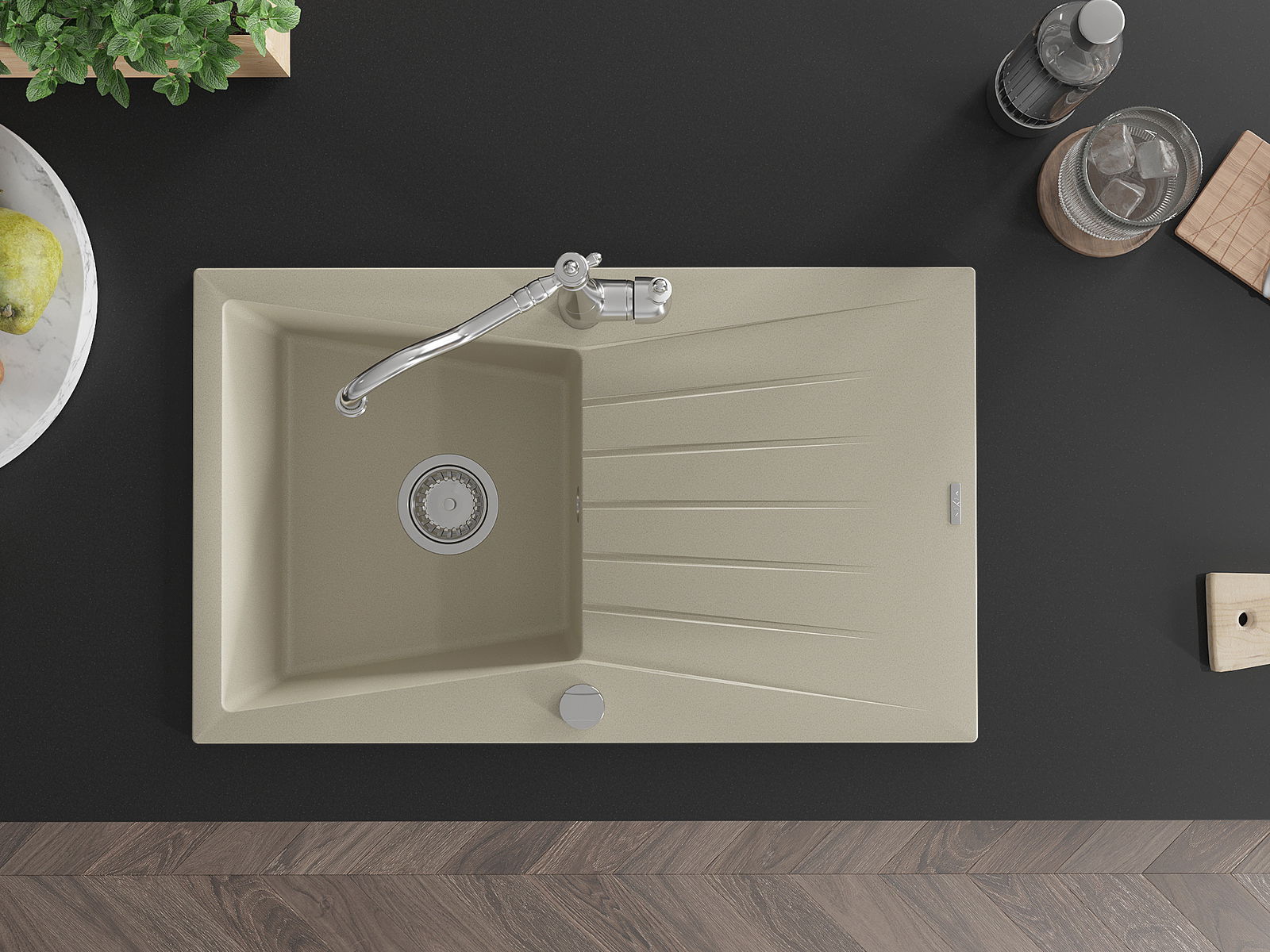 Mexen Cesar évier en granit 1 bac avec égouttoir et mitigeur de cuisine Carla, beige - 6514-69-670700-00