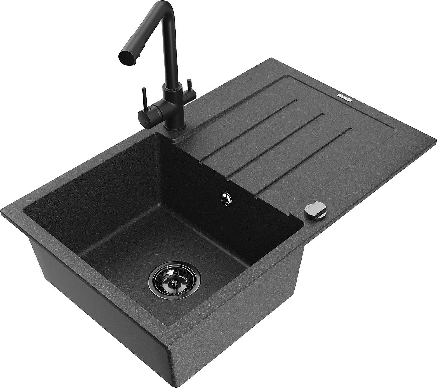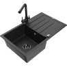 Mexen Bruno évier en granit à 1 bac avec égouttoir et robinet de cuisine Duero, noir moucheté - 6513-76-671600-70-B