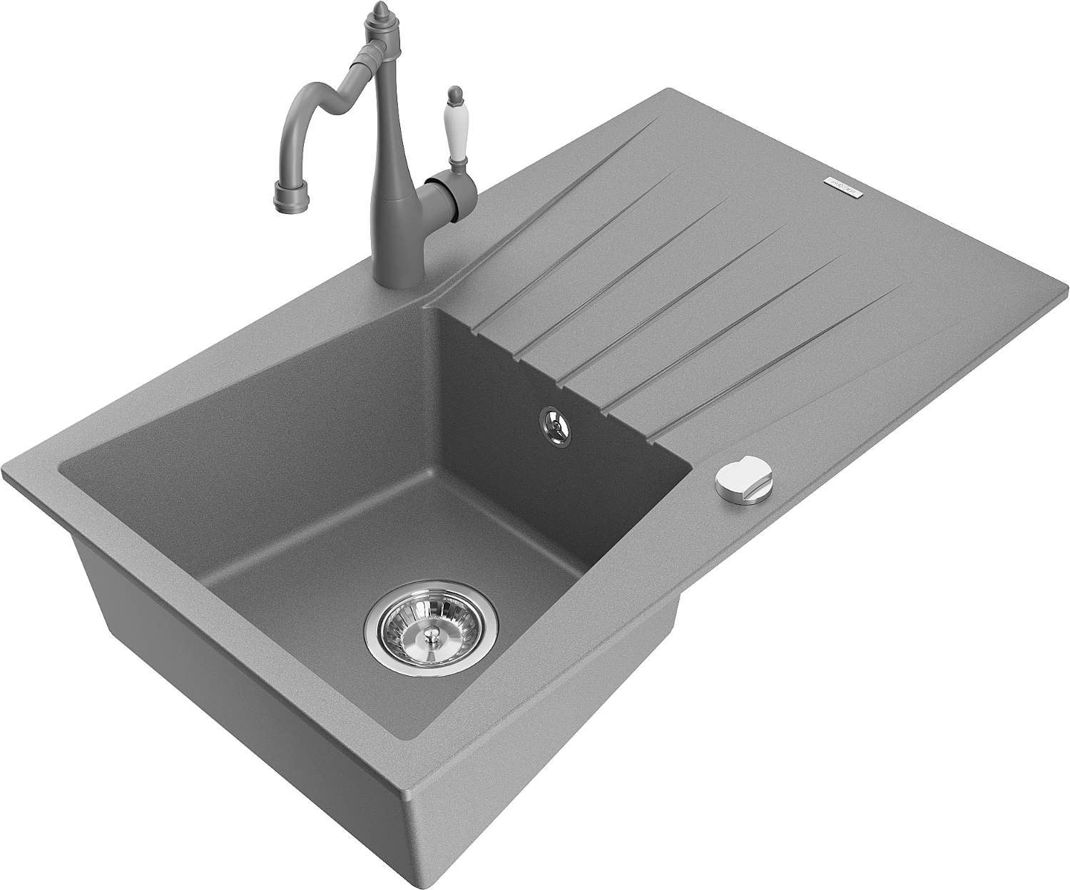 Mexen Cesar évier de cuisine en granit 1 bac avec égouttoir et robinet de cuisine Carla, gris - 6514-71-670700-71