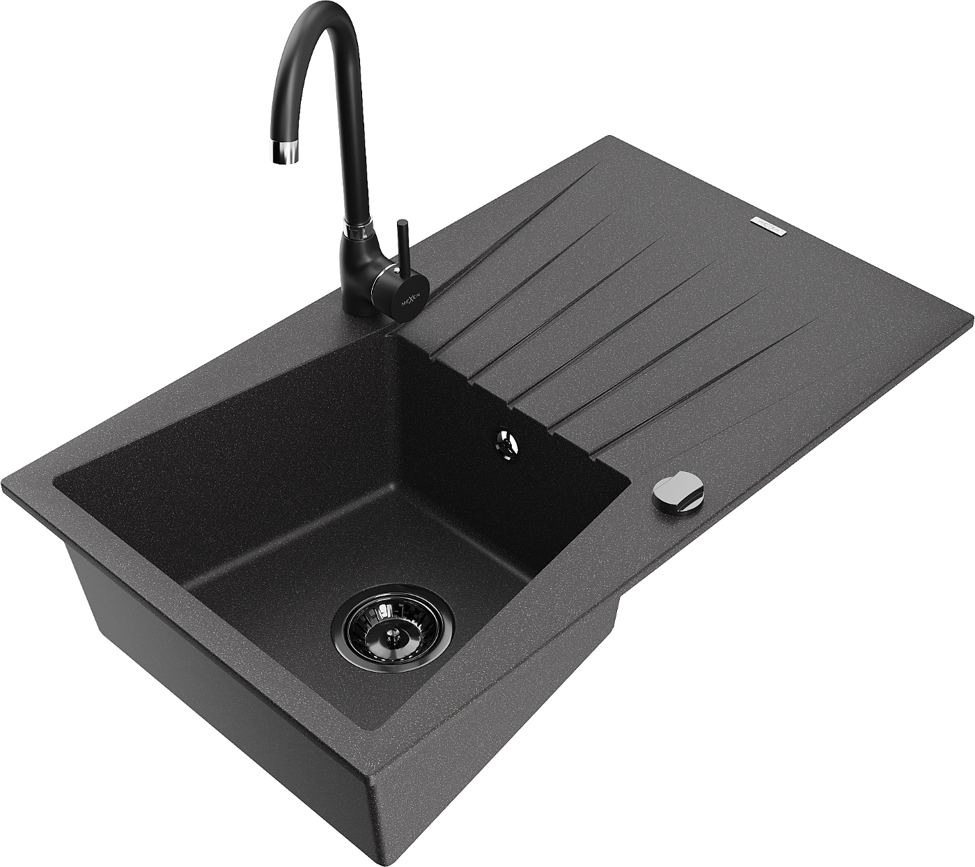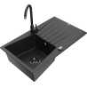 Mexen Cesar évier en granit 1 bac avec égouttoir et robinet de cuisine Telma, noir moucheté - 6514-76-670200-70-B