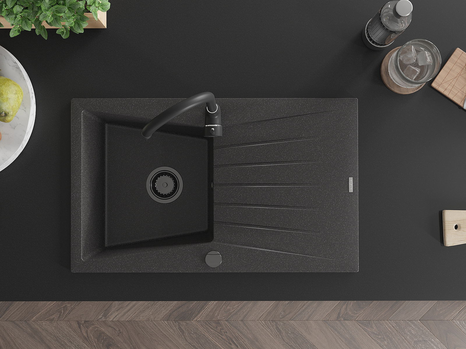 L'évier est fabriqué en granit de haute qualité. Il constitue un complément élégant et surtout pratique pour toute cuisine, quel que soit son style. La qualité et la durabilité du granit garantissent de nombreuses années d'utilisation.