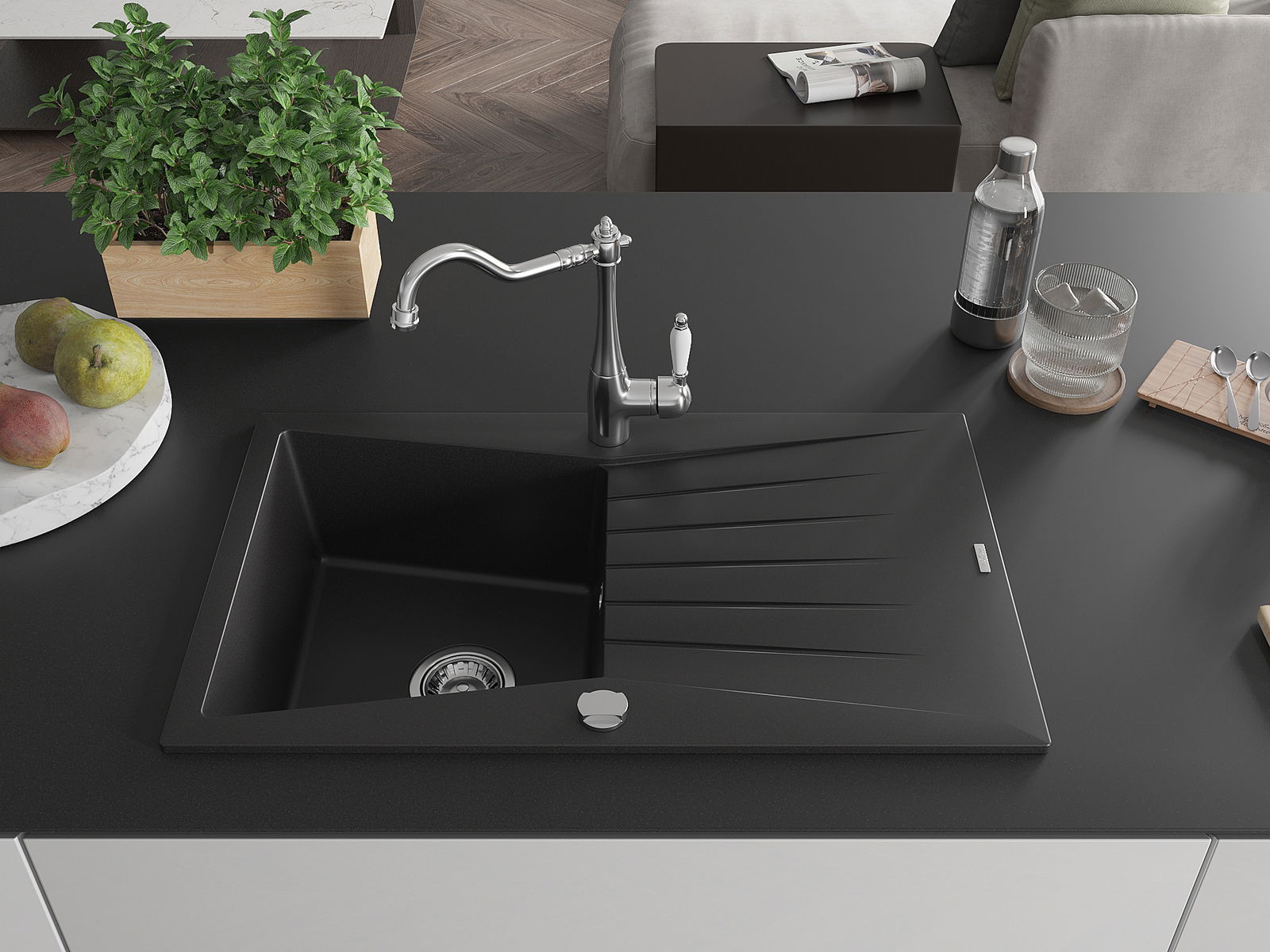 L'évier est fabriqué en granit de haute qualité. Il constitue un complément élégant et surtout pratique pour toute cuisine, quel que soit son style. La qualité et la durabilité du granit garantissent de nombreuses années d'utilisation.