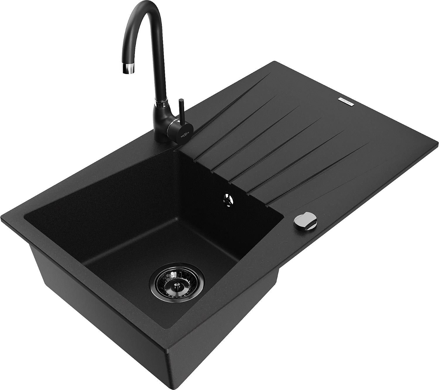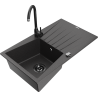 Mexen Cesar évier de cuisine en granit 1 bac avec égouttoir et robinet de cuisine Telma, noir - 6514-77-670200-70-B