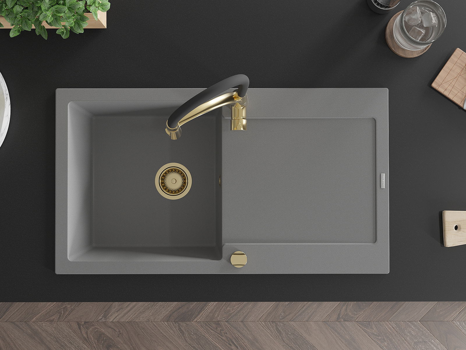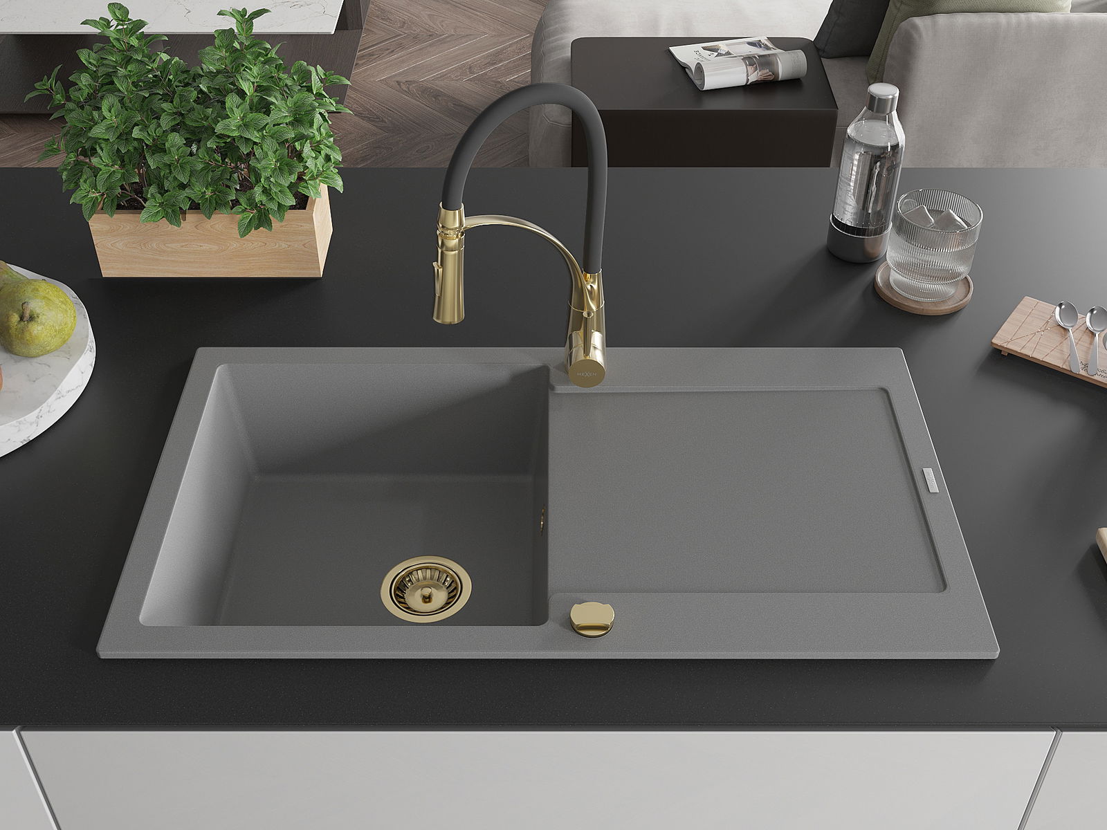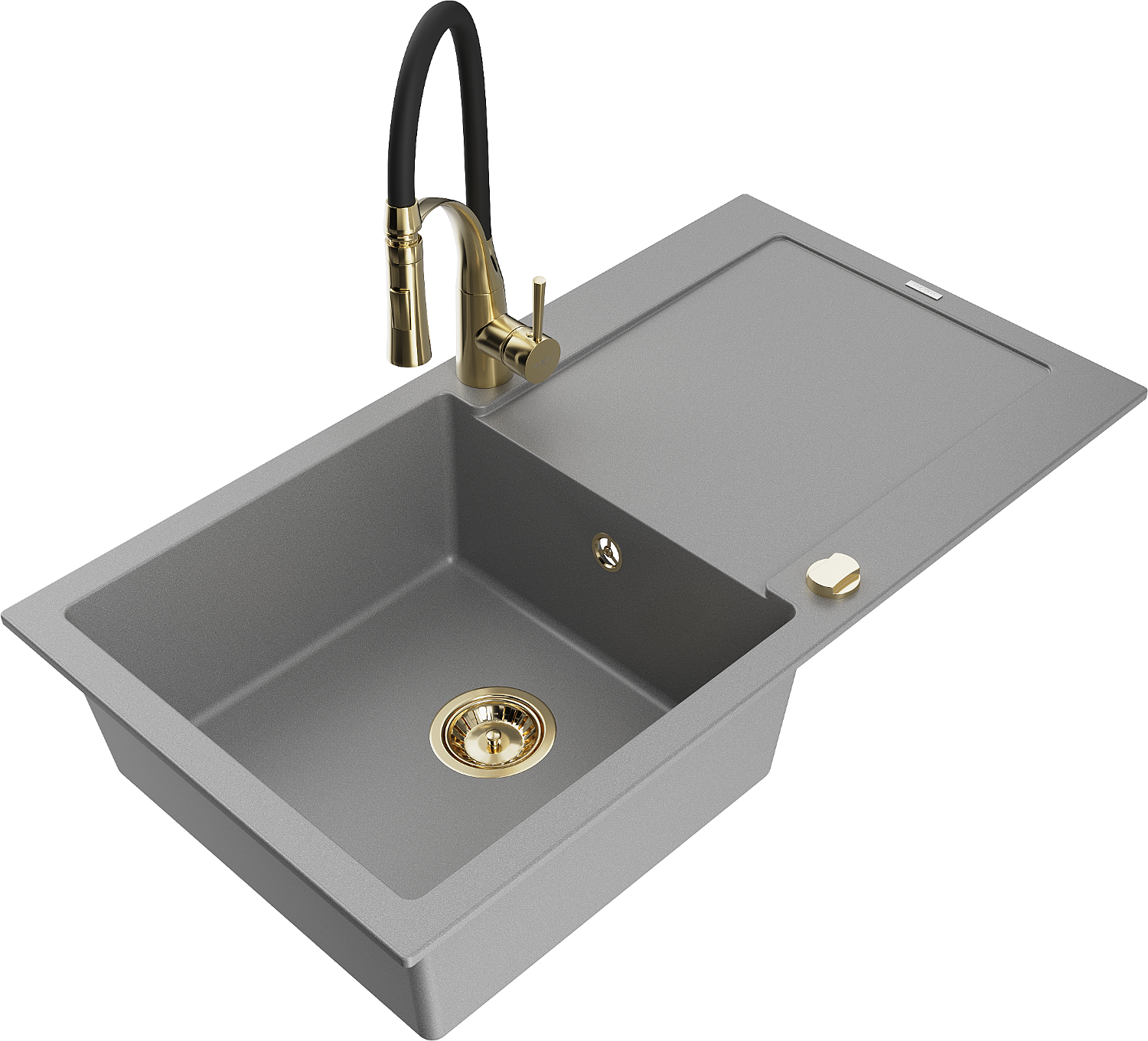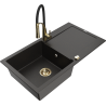 Mexen Leo évier en granit 1 bac avec égouttoir et robinet de cuisine Aster, gris - 6501-71-73450-57-G