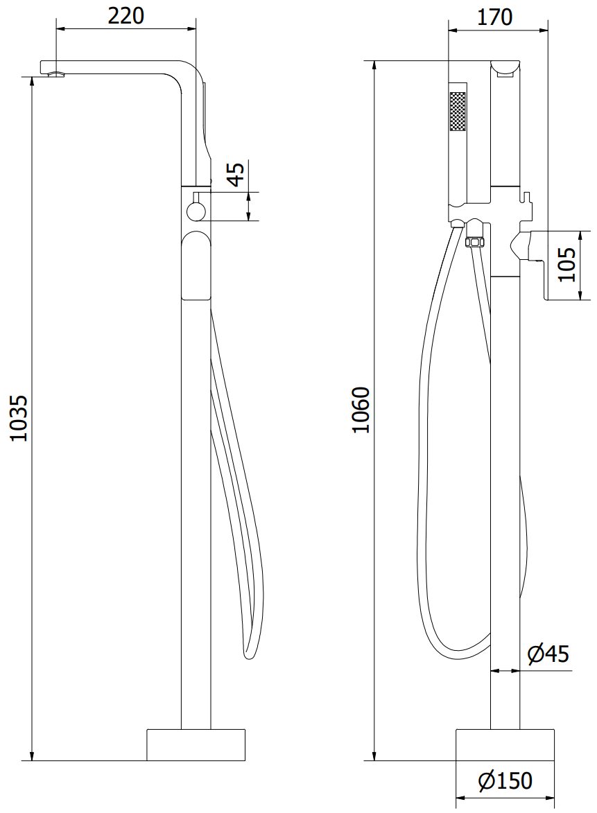 Hauteur du robinet: 106 cm