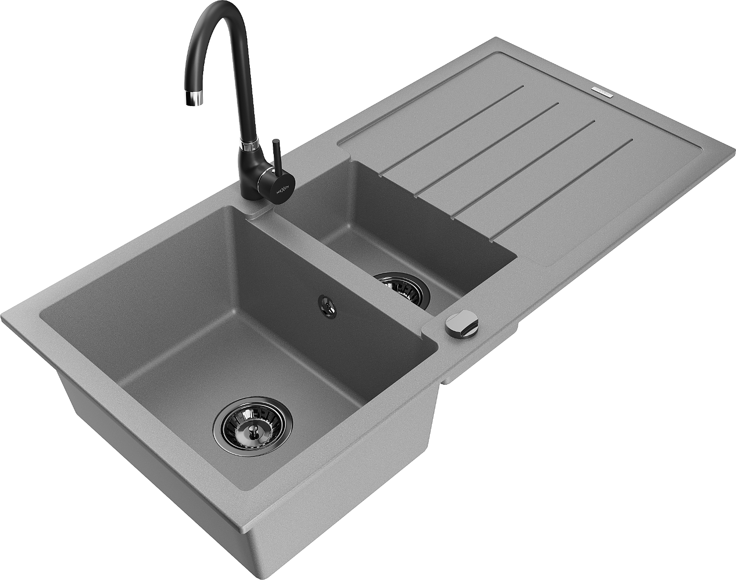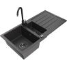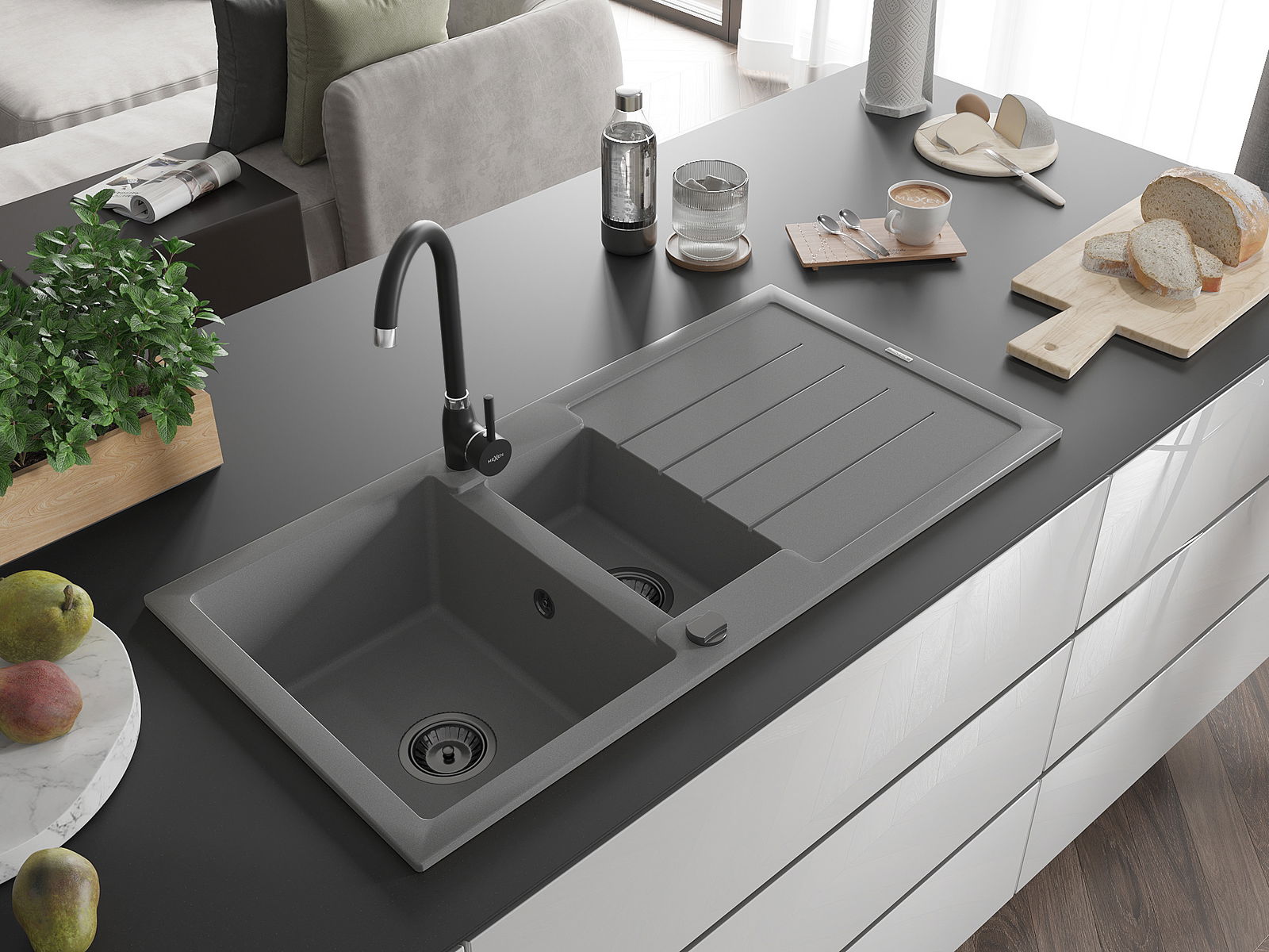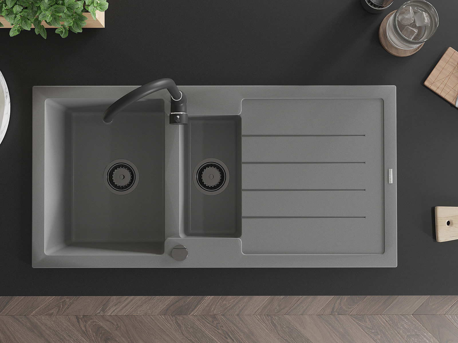 Mexen Andres évier en granit 1,5 cuve avec égouttoir et mitigeur de cuisine Telma, gris - 6515-71-670200-70-B
