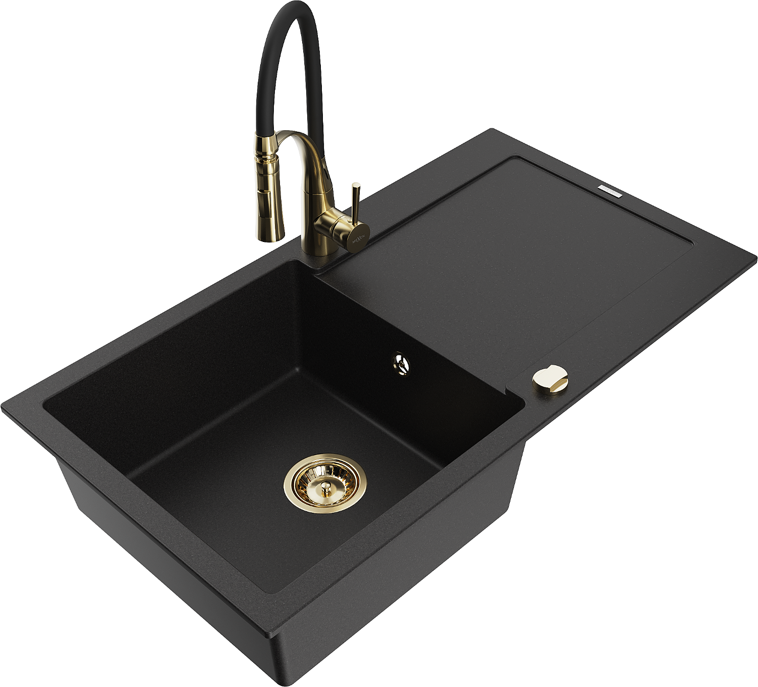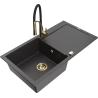 Mexen Leo évier en granit 1 bac avec égouttoir et mitigeur de cuisine Aster, noir - 6501-77-73450-57-G