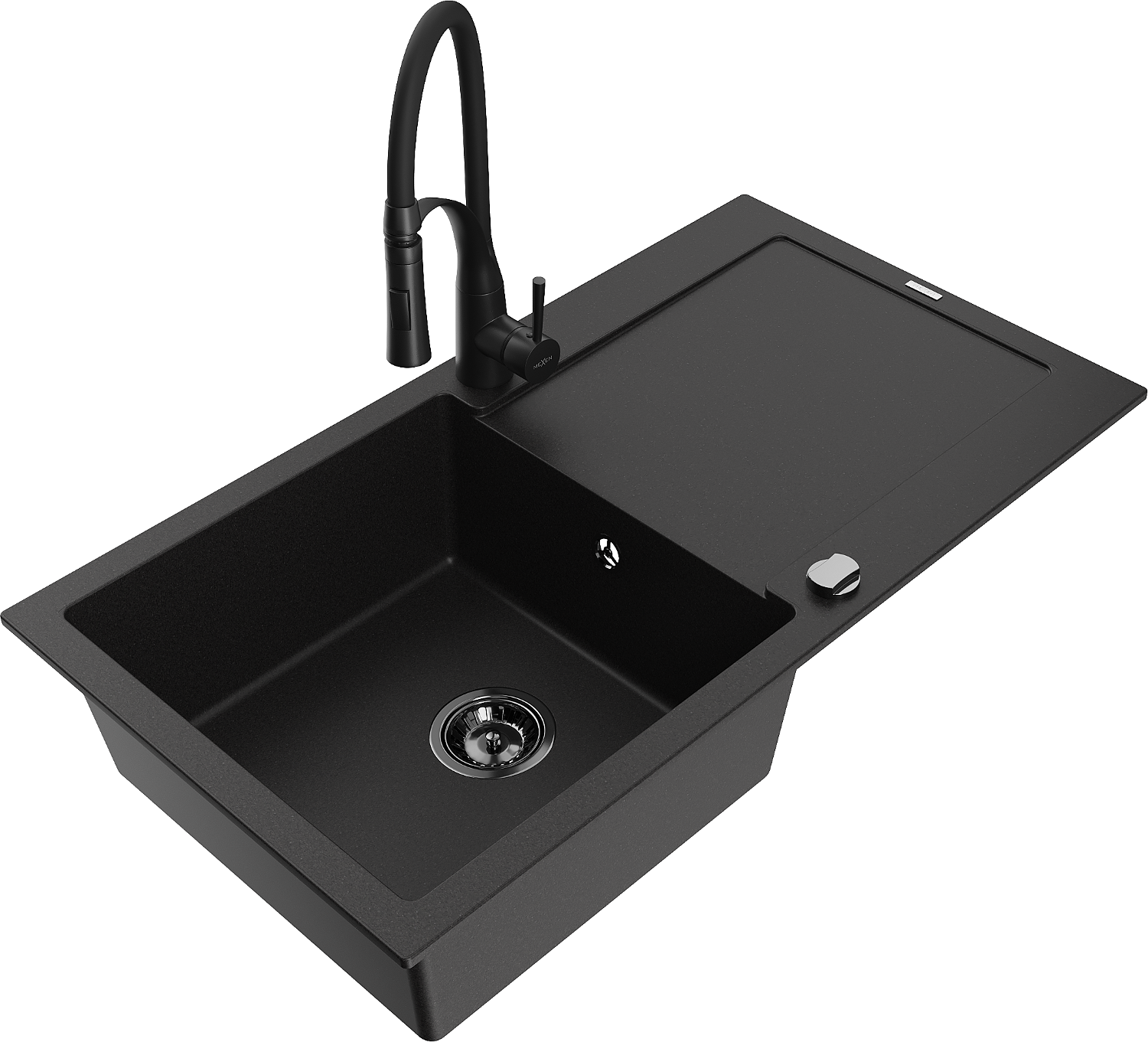 Mexen Leo Évier en granit à 1 bac avec égouttoir et robinet de cuisine Aster, noir - 6501-77-73450-70-B