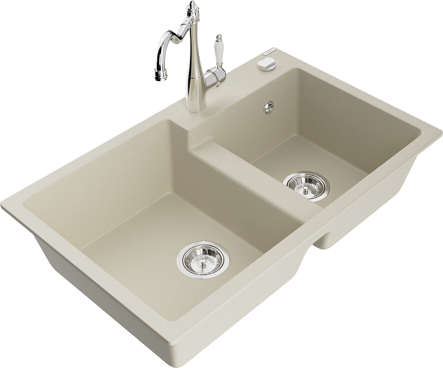 Mexen Tomas évier en granit 2 bacs avec mitigeur de cuisine Carla, beige - 6516-69-670700-00