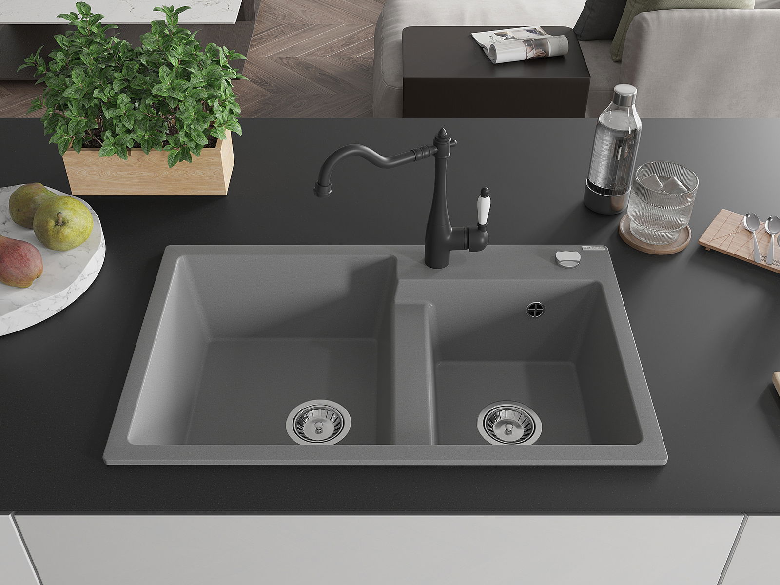 La surface de l'évier est très bien trempée et se distingue par une résistance exceptionnelle aux dommages mécaniques et aux rayures. Ce matériau durable vous permettra de profiter de son bel aspect pendant de nombreuses années.