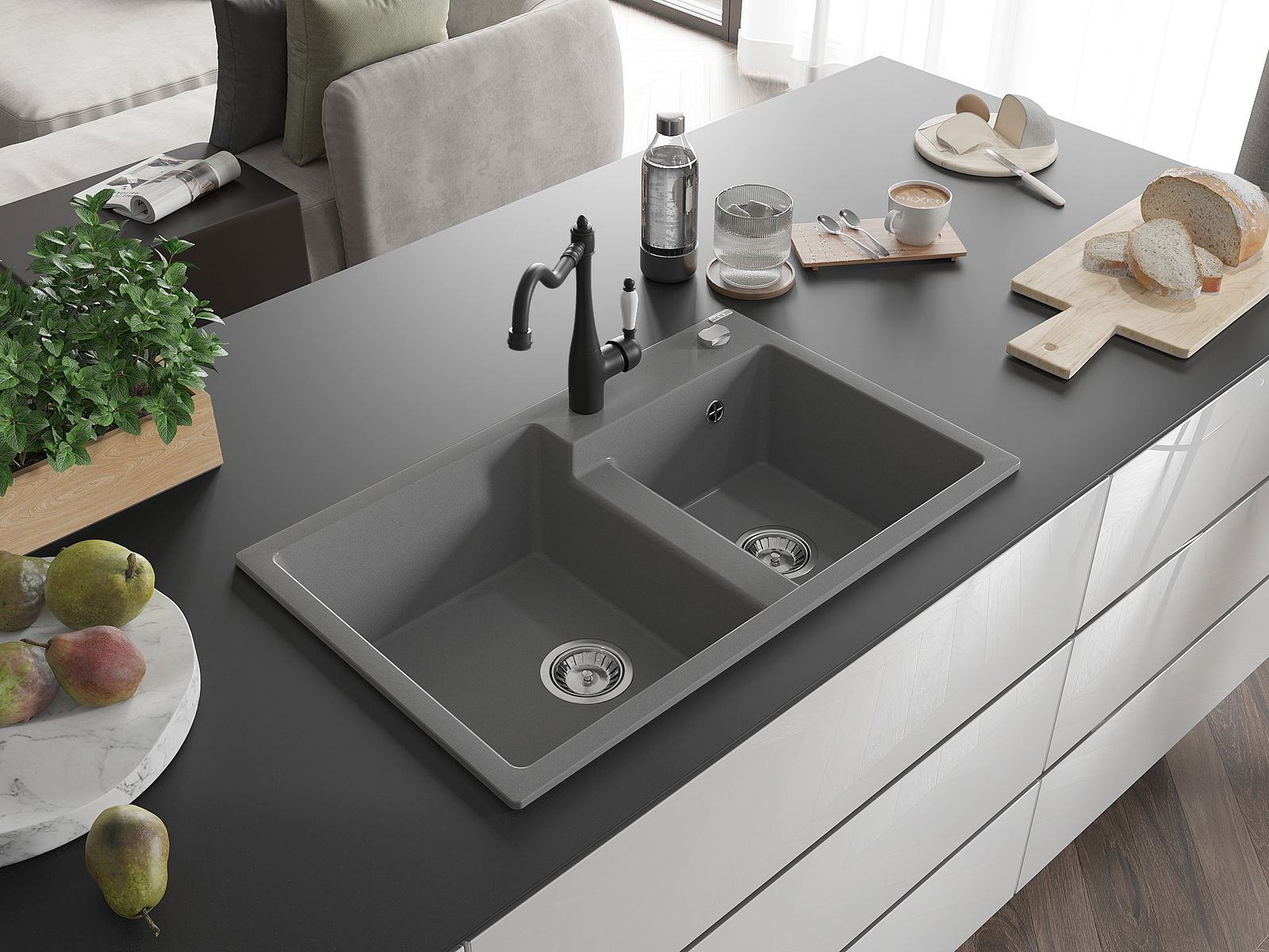 L'évier est fabriqué en granit de haute qualité. Il constitue un complément élégant et surtout pratique pour toute cuisine, quel que soit son style. La qualité et la durabilité du granit garantissent de nombreuses années d'utilisation.