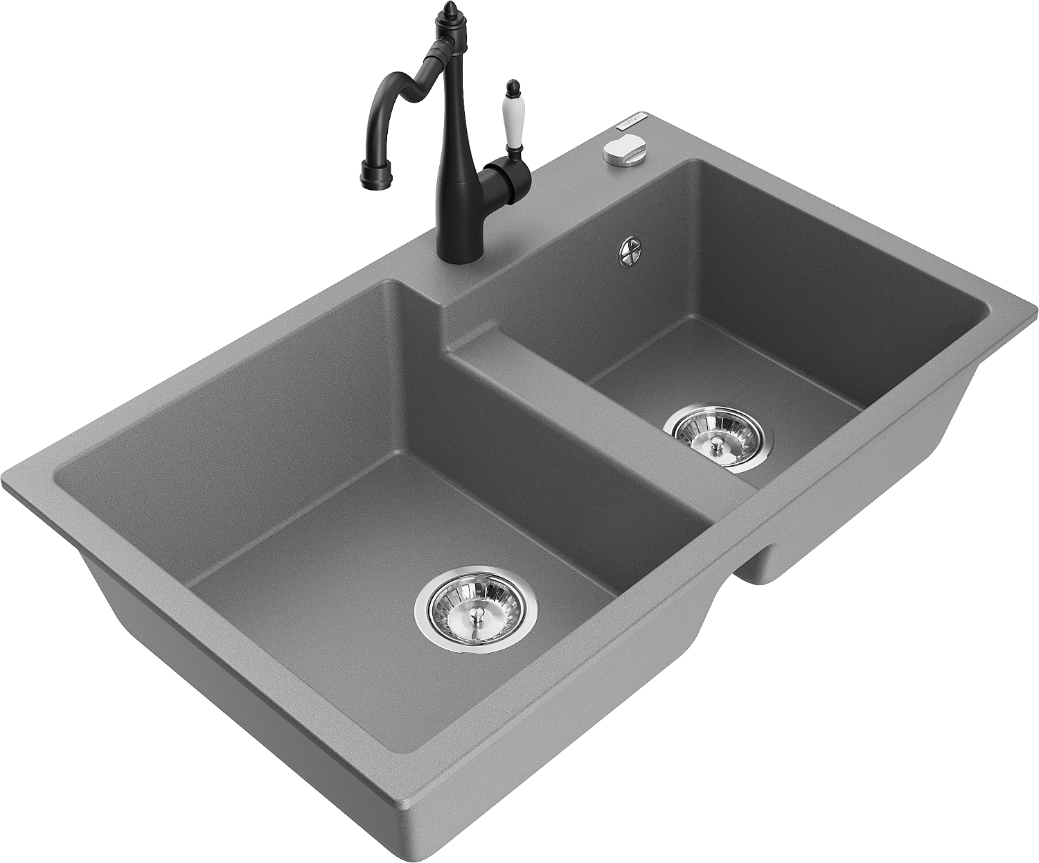 Mexen Tomas évier en granit 2-bacs avec robinet de cuisine Carla, gris - 6516-71-670700-70